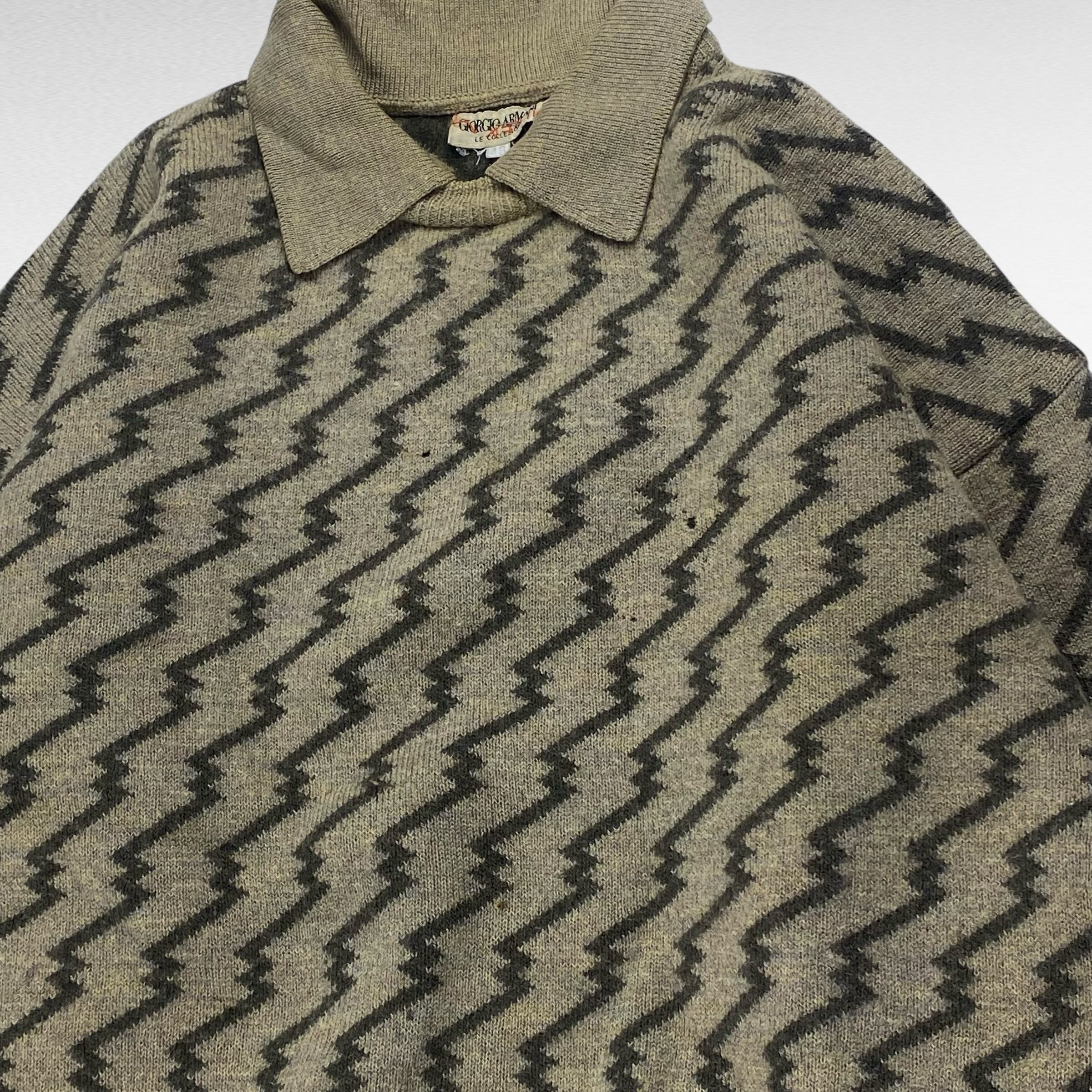【80〜90's】 ジョルジオアルマーニ イタリア製 L相当 フェイクレイヤード 襟付き ウールニット セーター