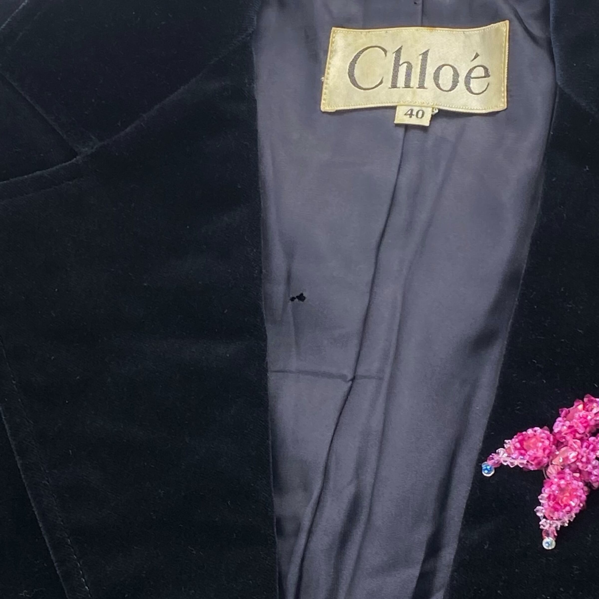 USED クロエ ベルベットテーラードジャケット S相当 レディース ピンズ付き