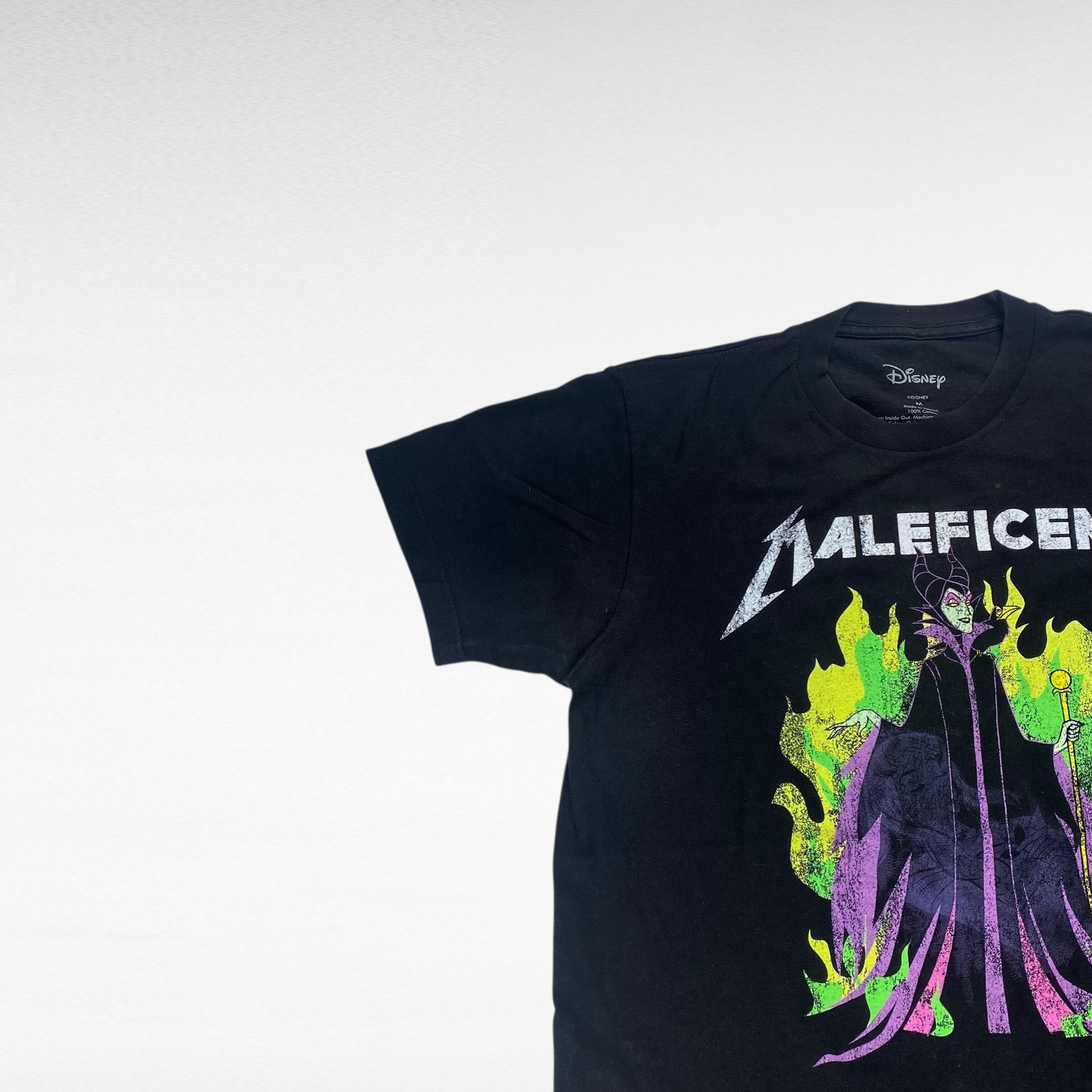 こちらは、眠れる森の美女に登場するヴィラン『マレフィセント』が世界的ロックバンドであるメタリカっぽくデザインされたパロディTシャツで、中々ディズニーからこういったパロディ物は出ないので珍しく人気の高い1着となっております。