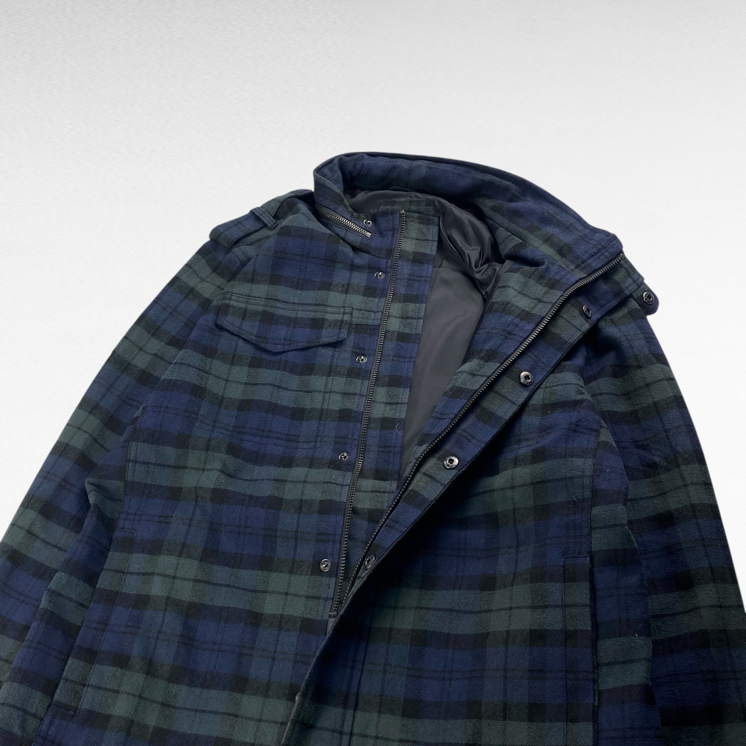 【00's】 ギャップ OLD GAP L相当 ジップアップウールブルゾン フード付き ブラックウォッチ dp6013