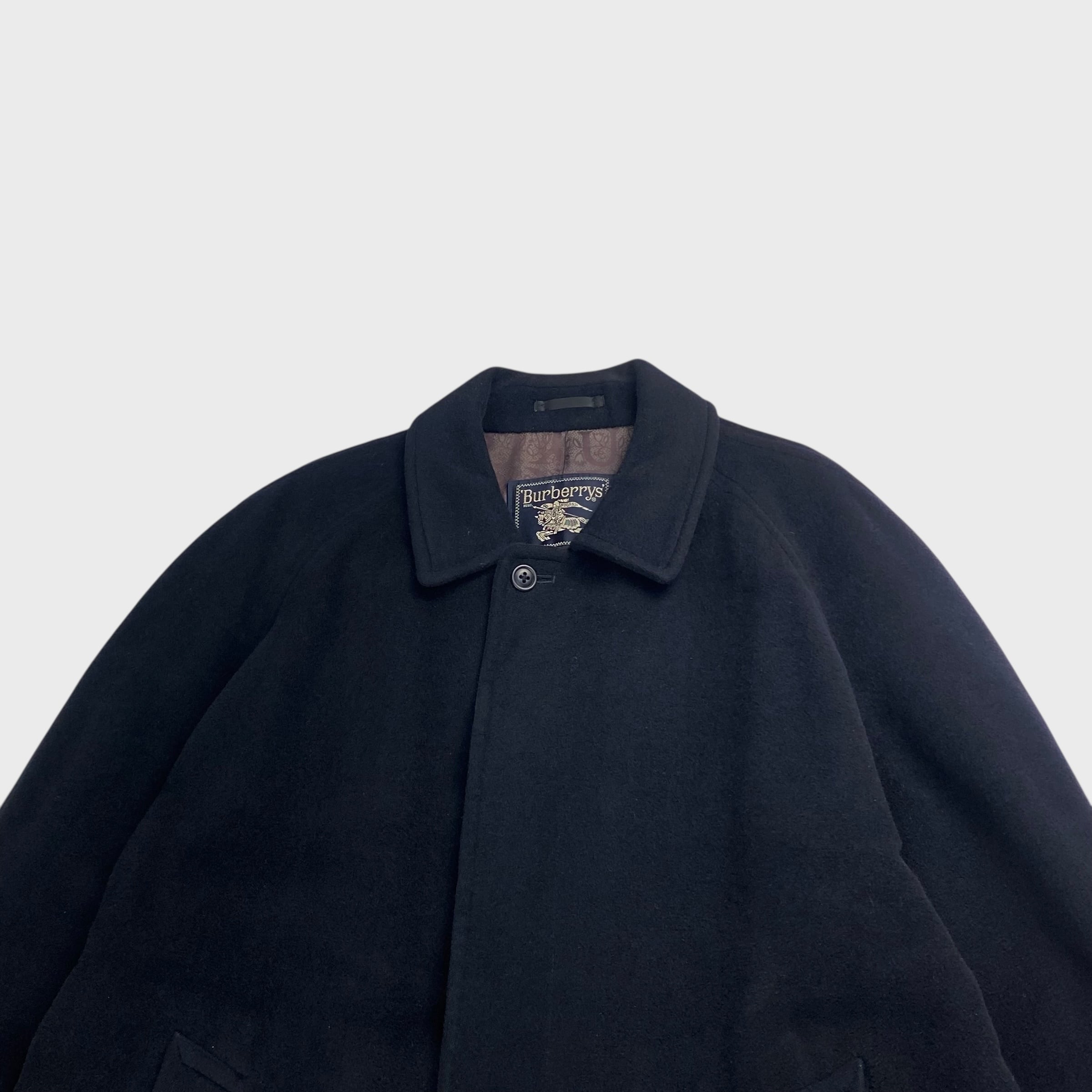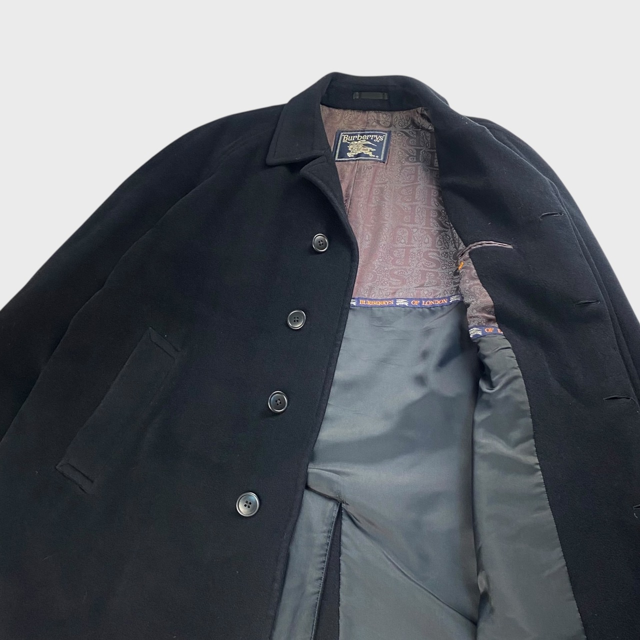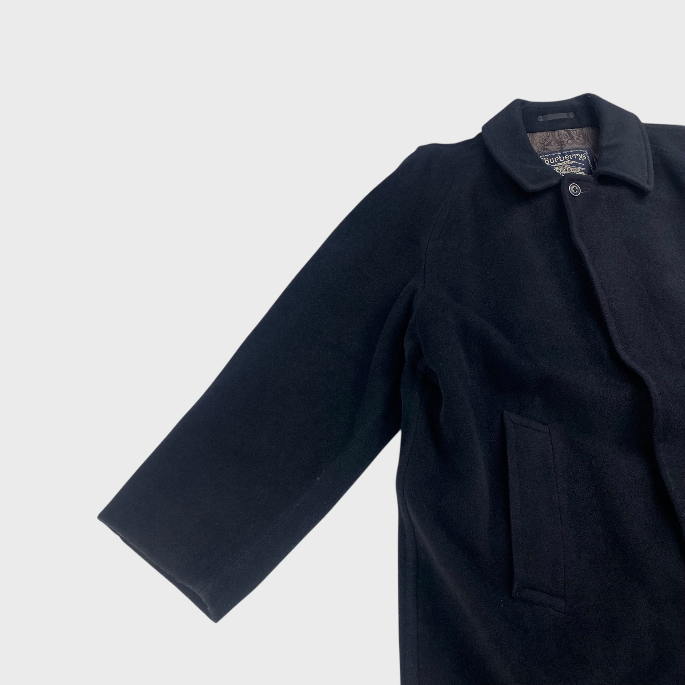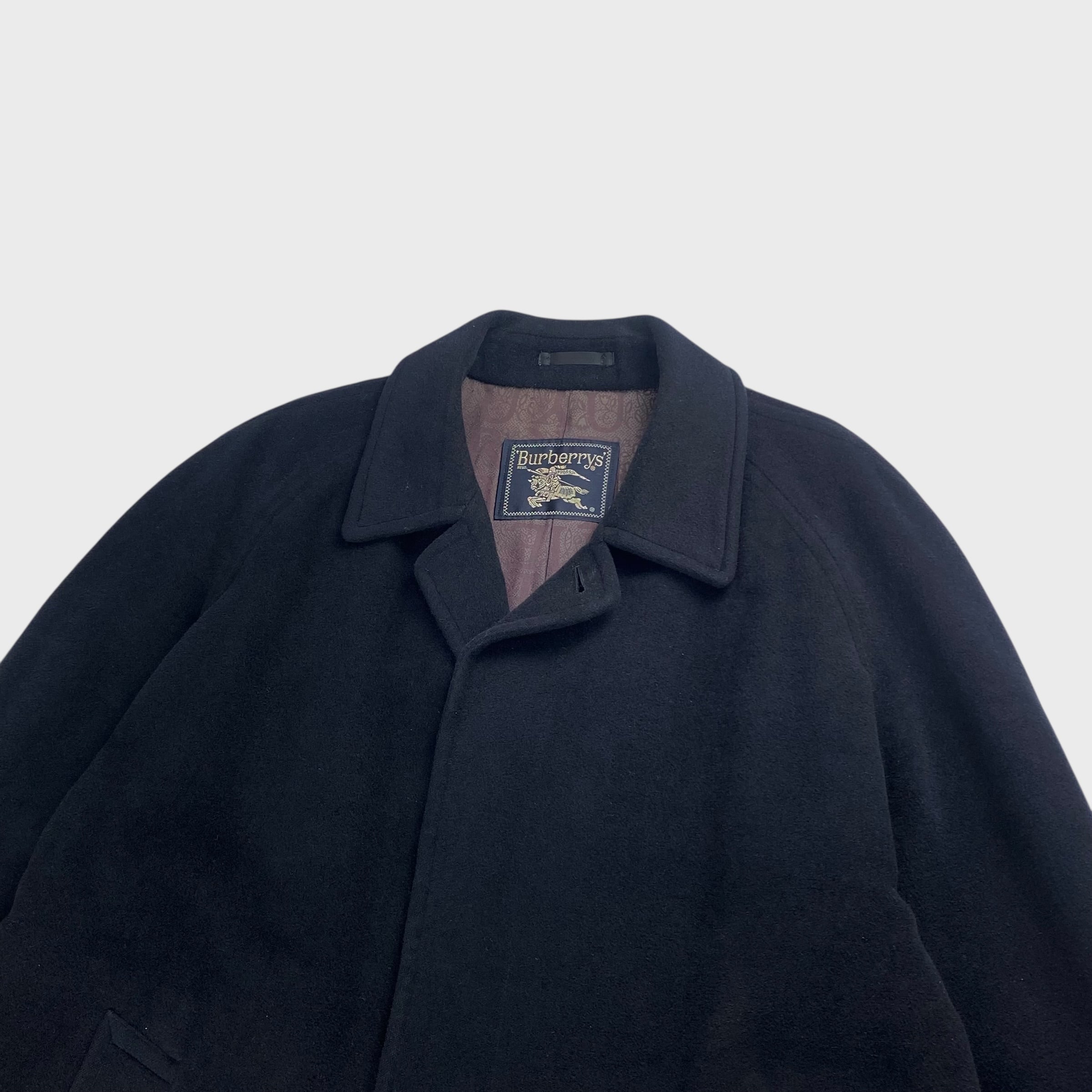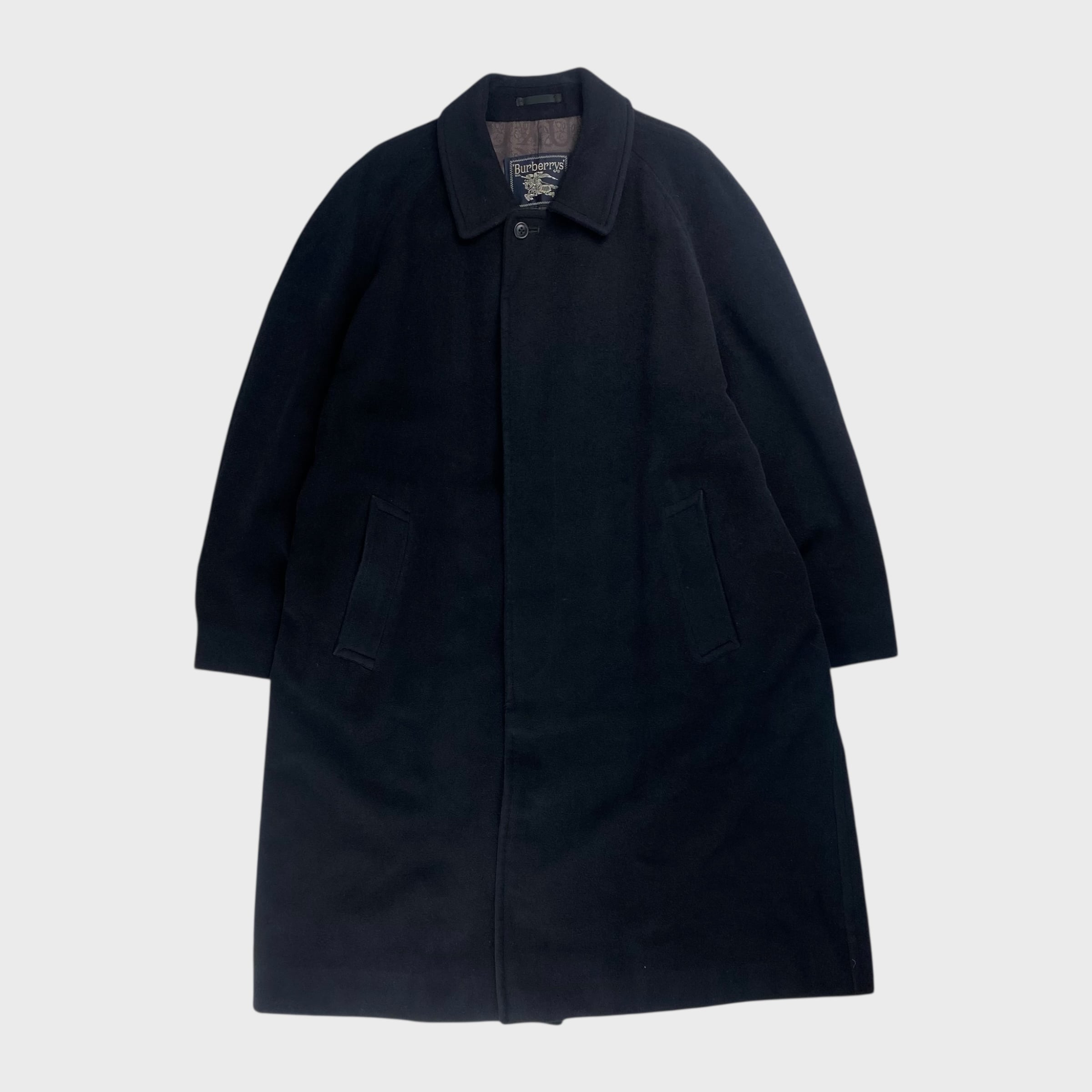 【90's】 バーバリー 100%アンゴラ L相当 ステンカラーロングコート 開襟 dp6410