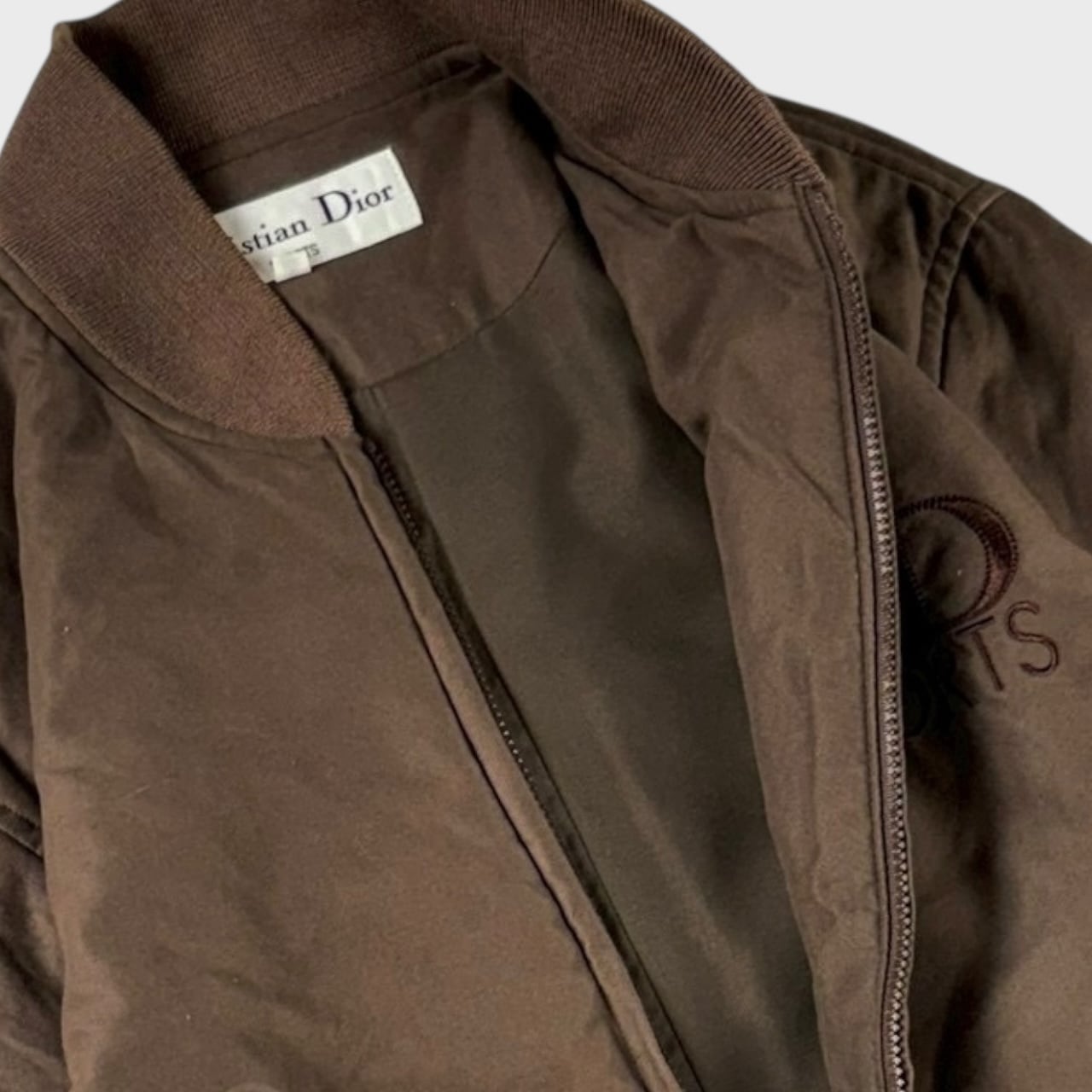 使い勝手のいいブラウンカラーで、胸元にはCDのロゴが入った比較的シンプルで幅広く合わせやすい1着かと。