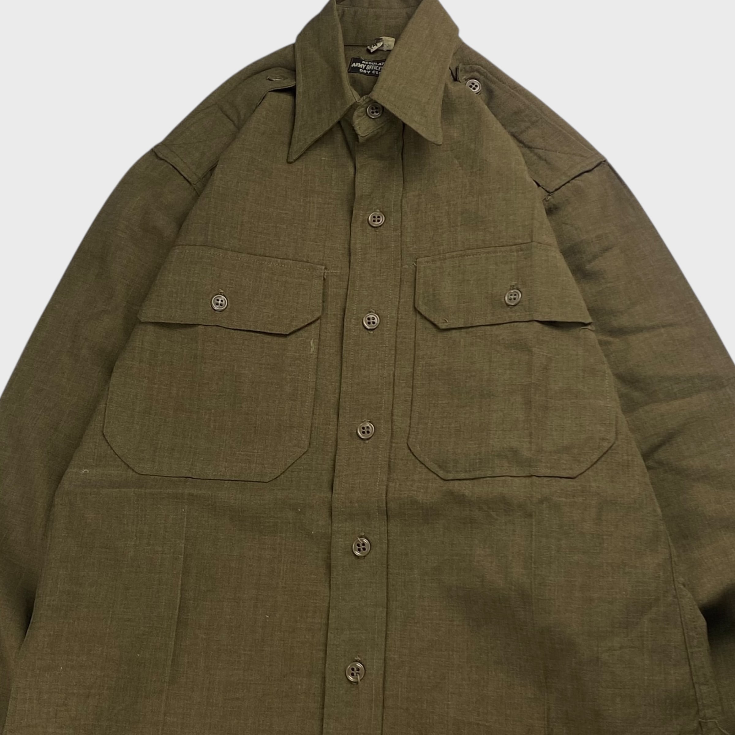 【40's】 US.ARMY 米軍実物 マチ付き マスタードシャツ ミリタリー ウールシャツ S相当 dp6450