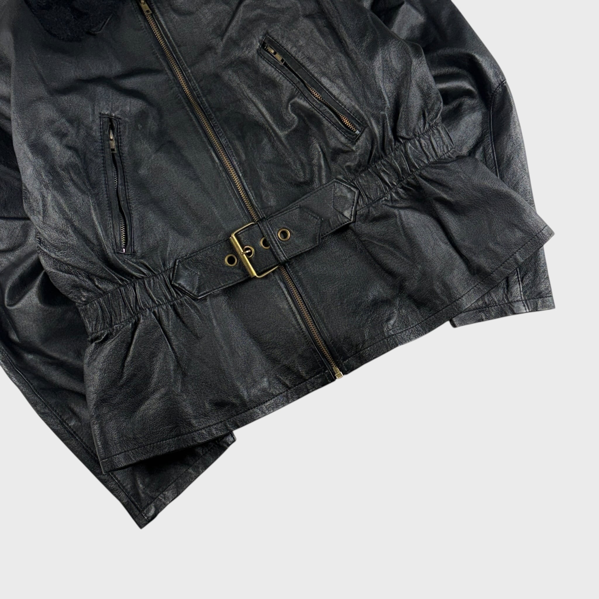 ADA レザージャケット 短丈 本革 ウエストベルト付き M相当 dp6486k