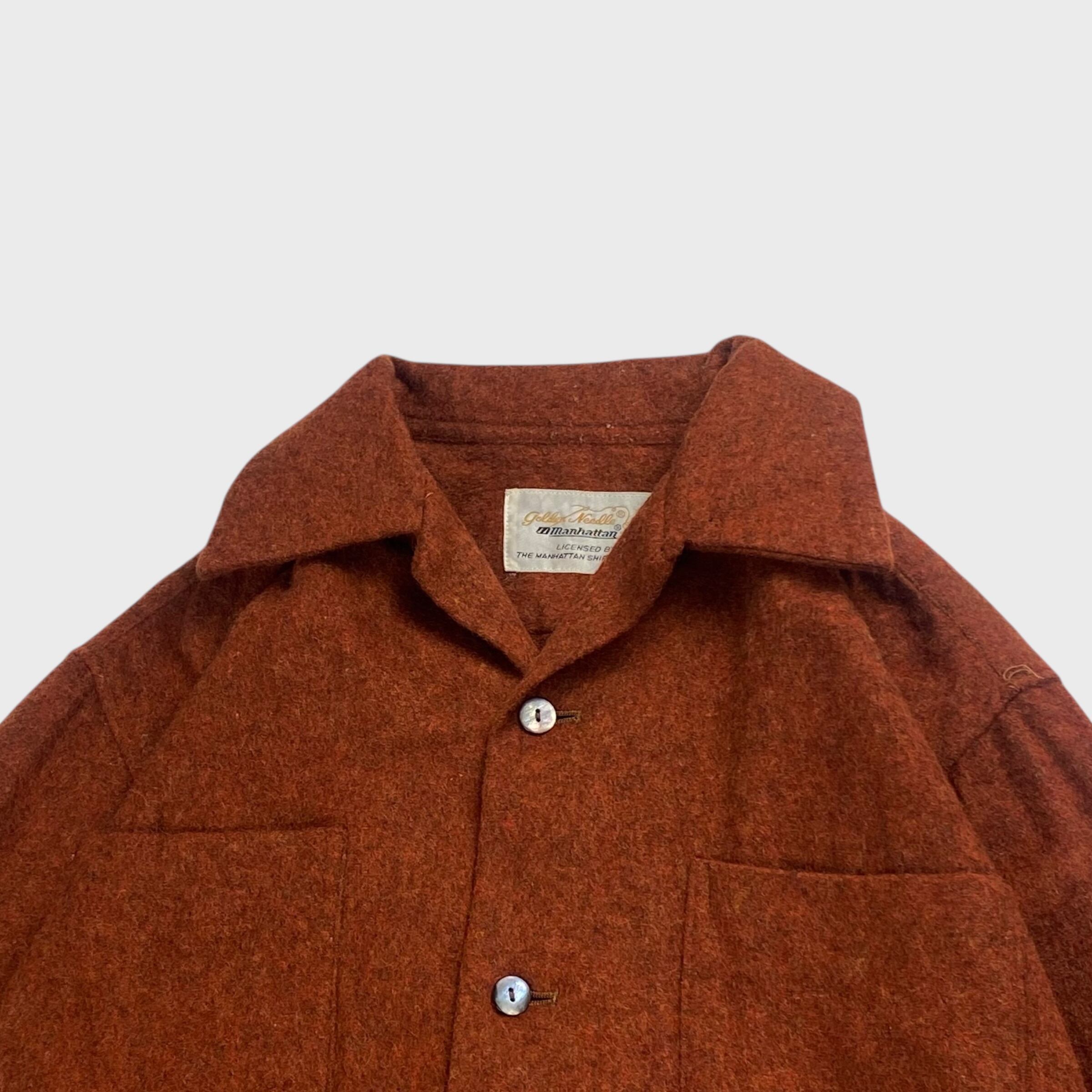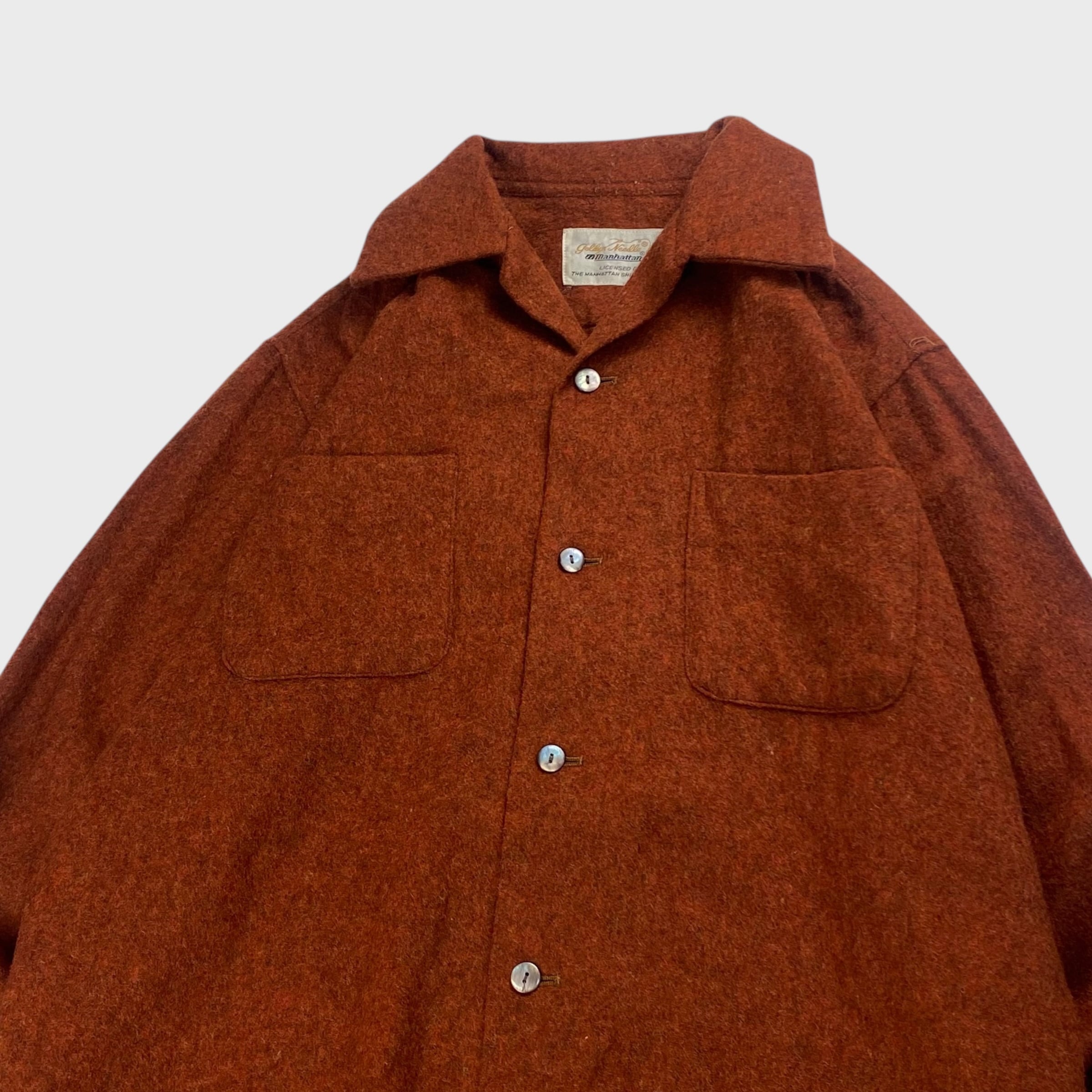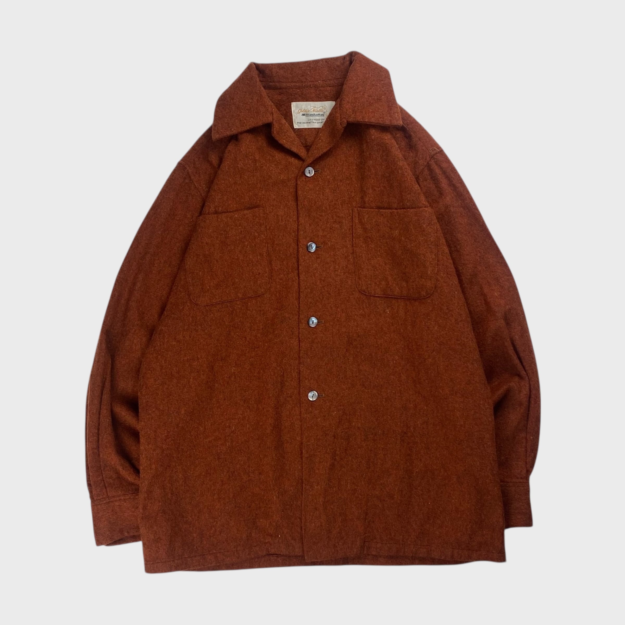 【60's】 Golden Needle Manhattan M 開襟ウールシャツ オープンカラー 長袖 dp6538