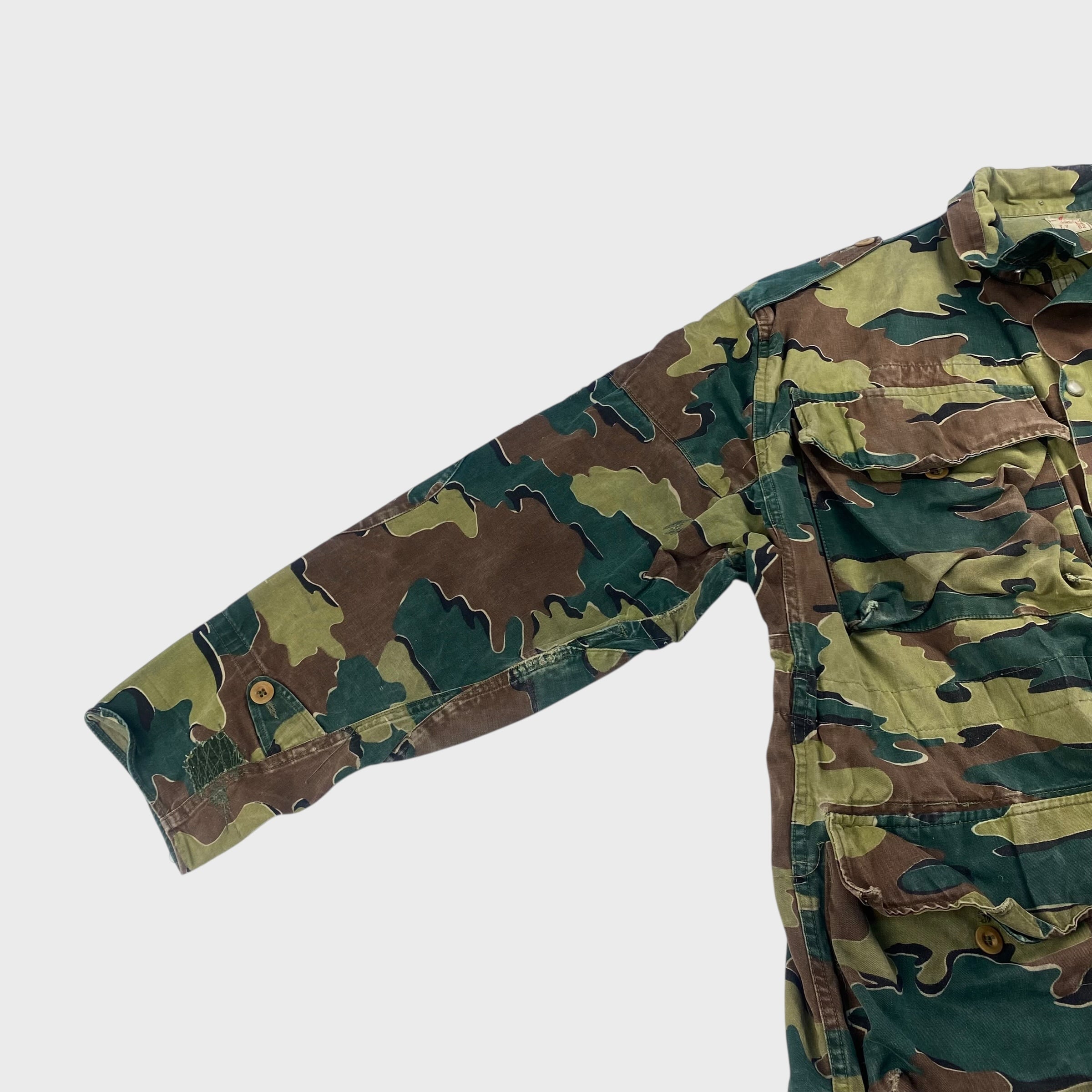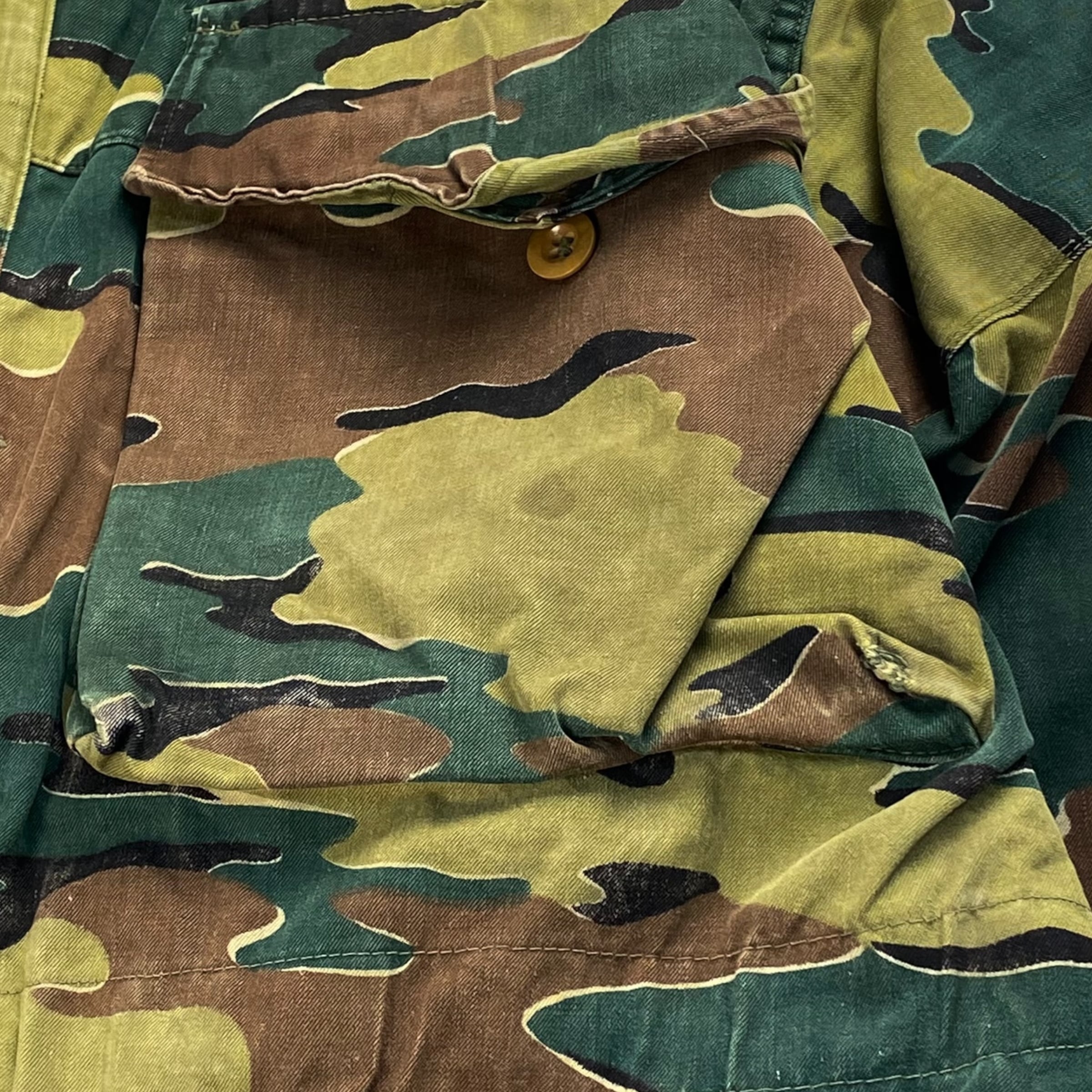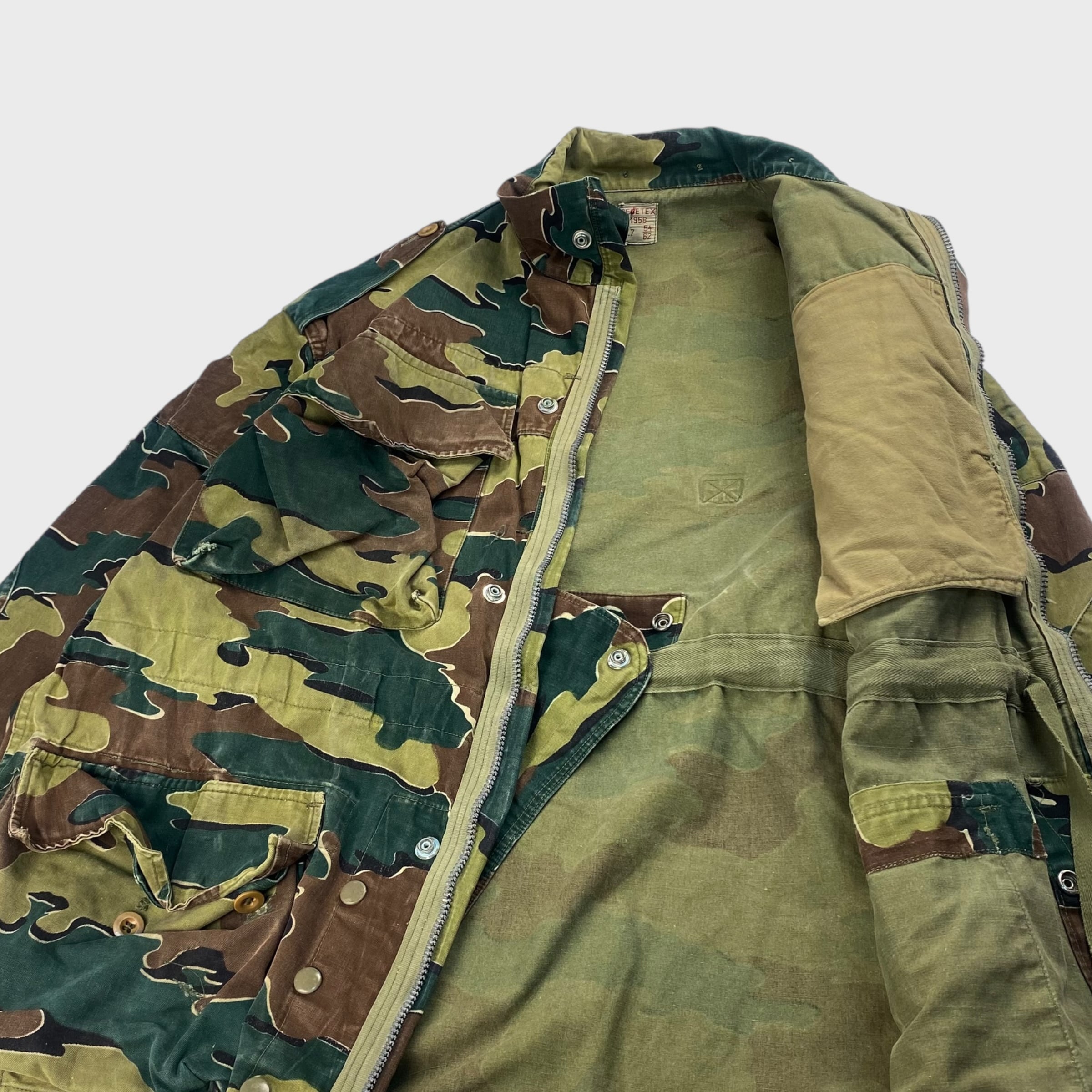 ベルギー軍を代表する特徴のあるジグソーカモが採用され、生地も丈夫で経年変化によるカスレ具合なんかも非常に雰囲気がある1着となっております。