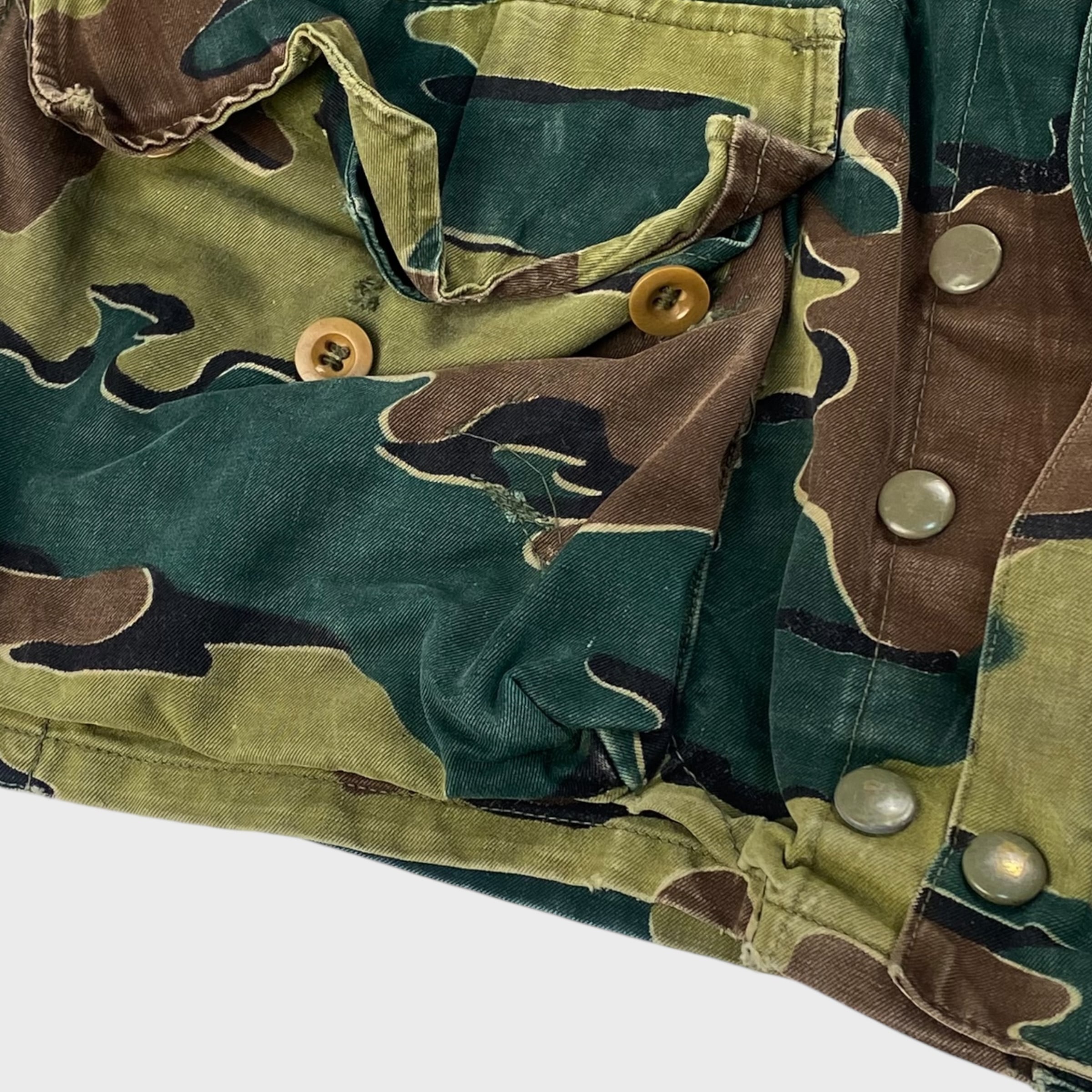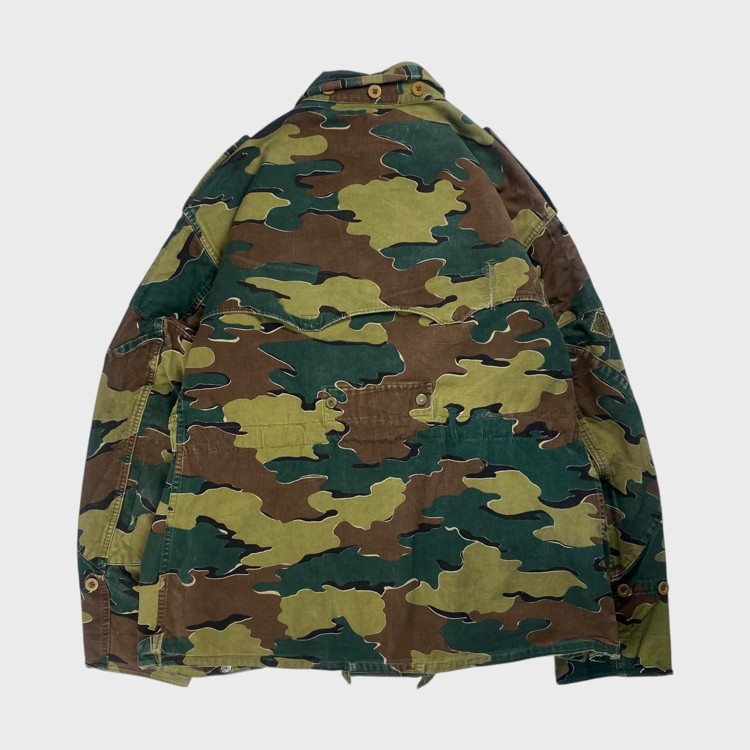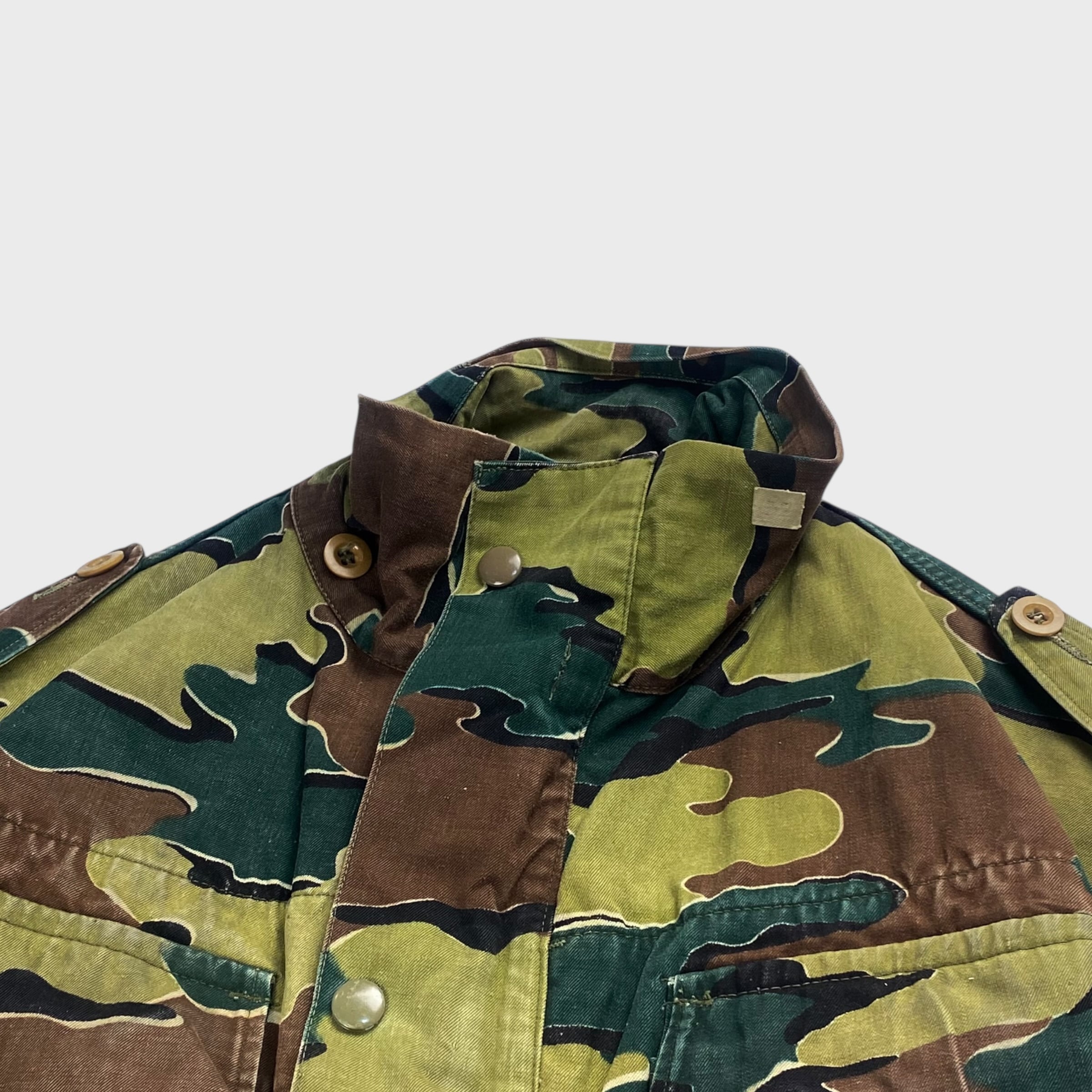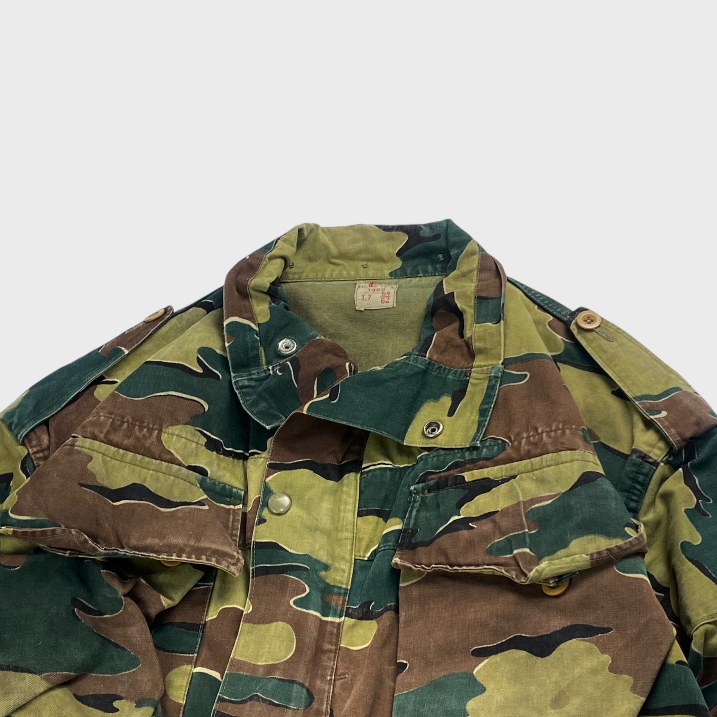 ベルギー軍を代表する特徴のあるジグソーカモが採用され、生地も丈夫で経年変化によるカスレ具合なんかも非常に雰囲気がある1着となっております。