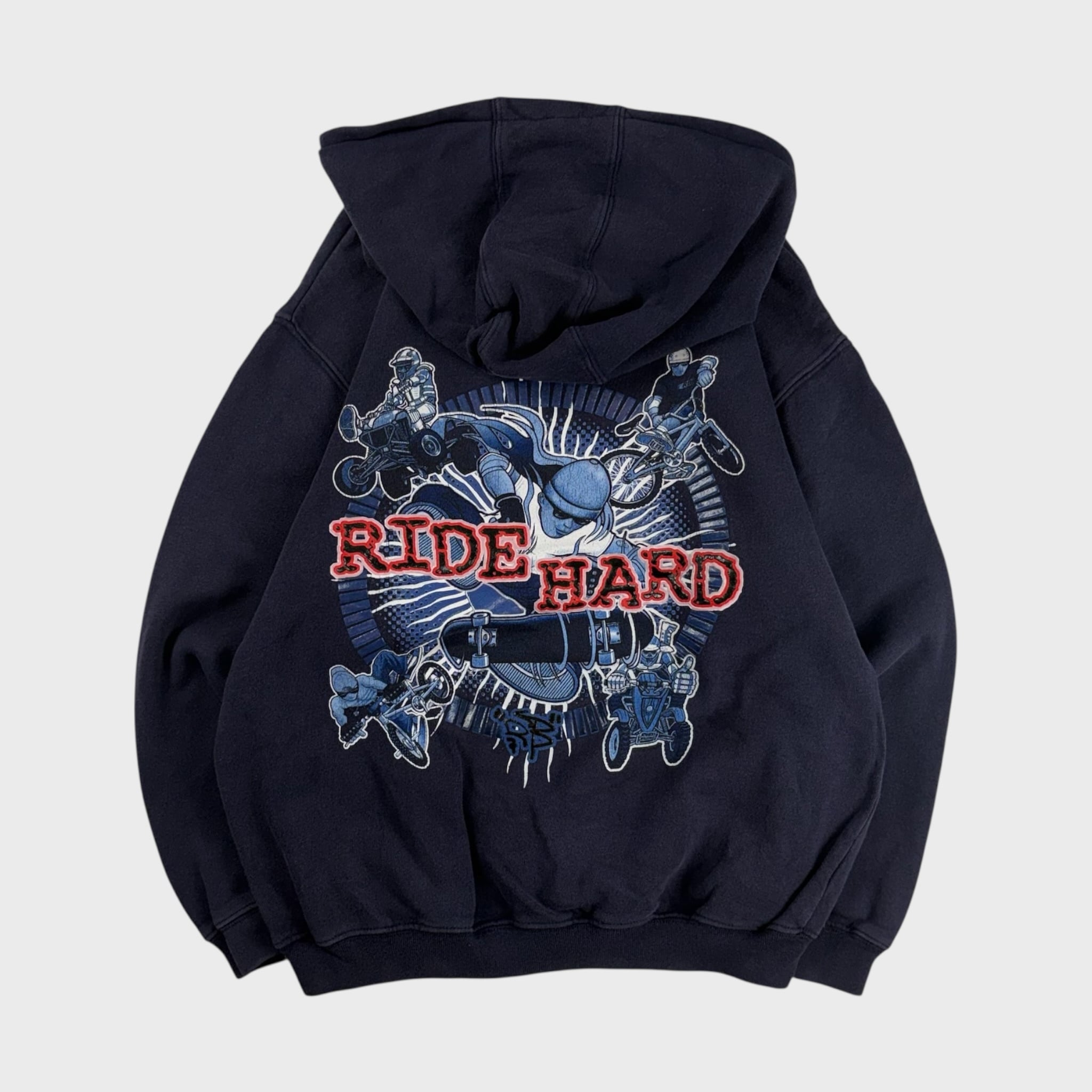 【90〜00's】 RUDE BOYZ スウェットパーカー フーディー 両面プリント S相当 dp6619k