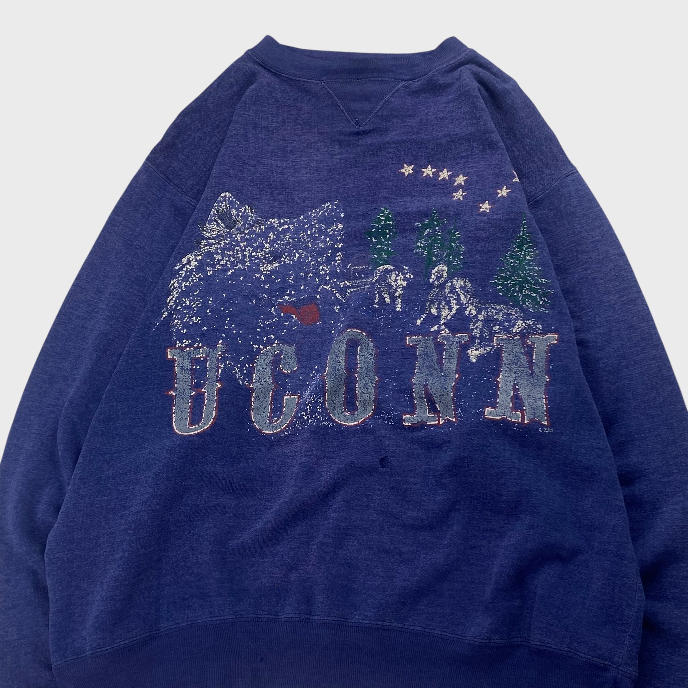 【90's】 コネチカット大学 L相当 カレッジロゴ 茄子紺 GALT SAND スウェット トレーナー 短丈 dp6634
