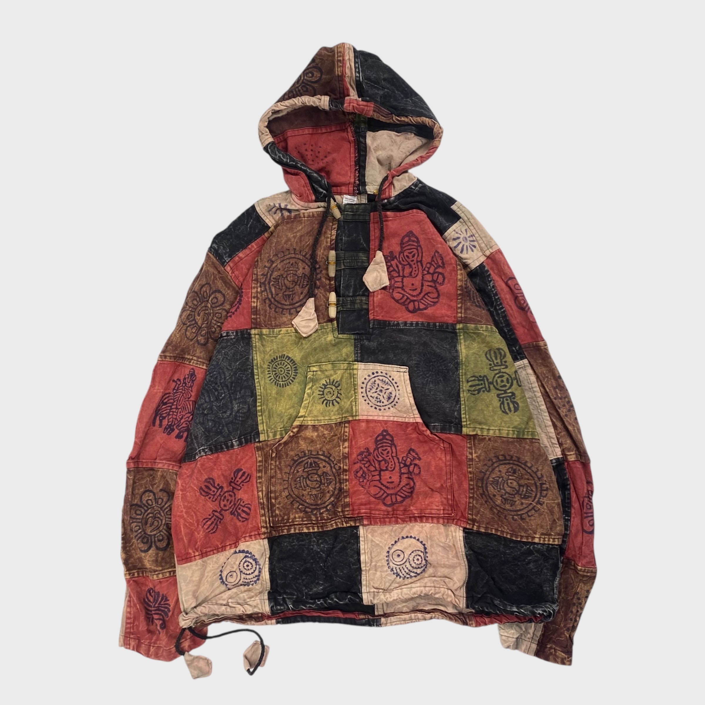 パッチワーク L相当 総柄 アノラックコットンパーカー プルオーバー dp6638