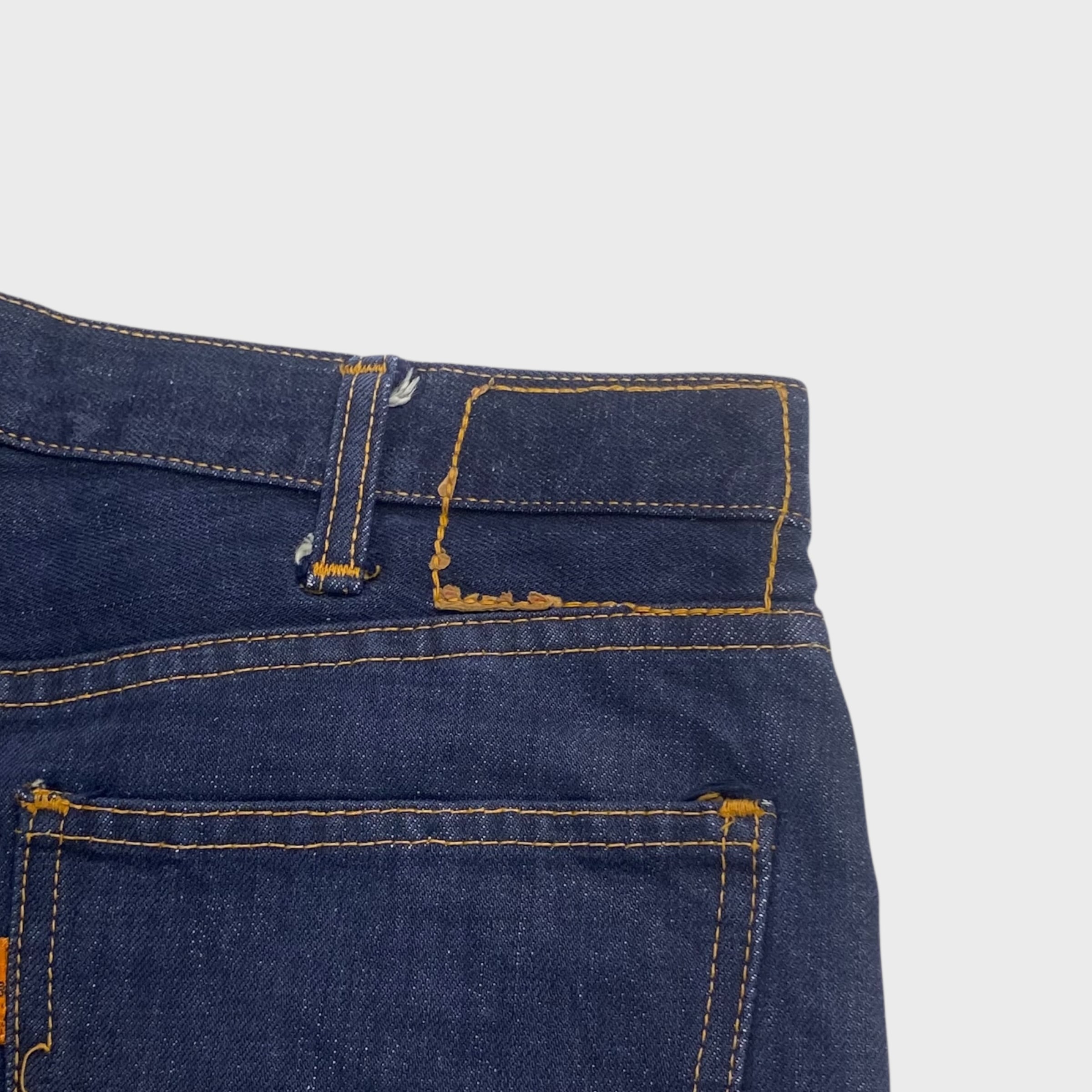 程よいブーツカットのシルエットと美しい縦落ち。色落ちのしていない程度のいいカラーでかなりおすすめの1本となっております。