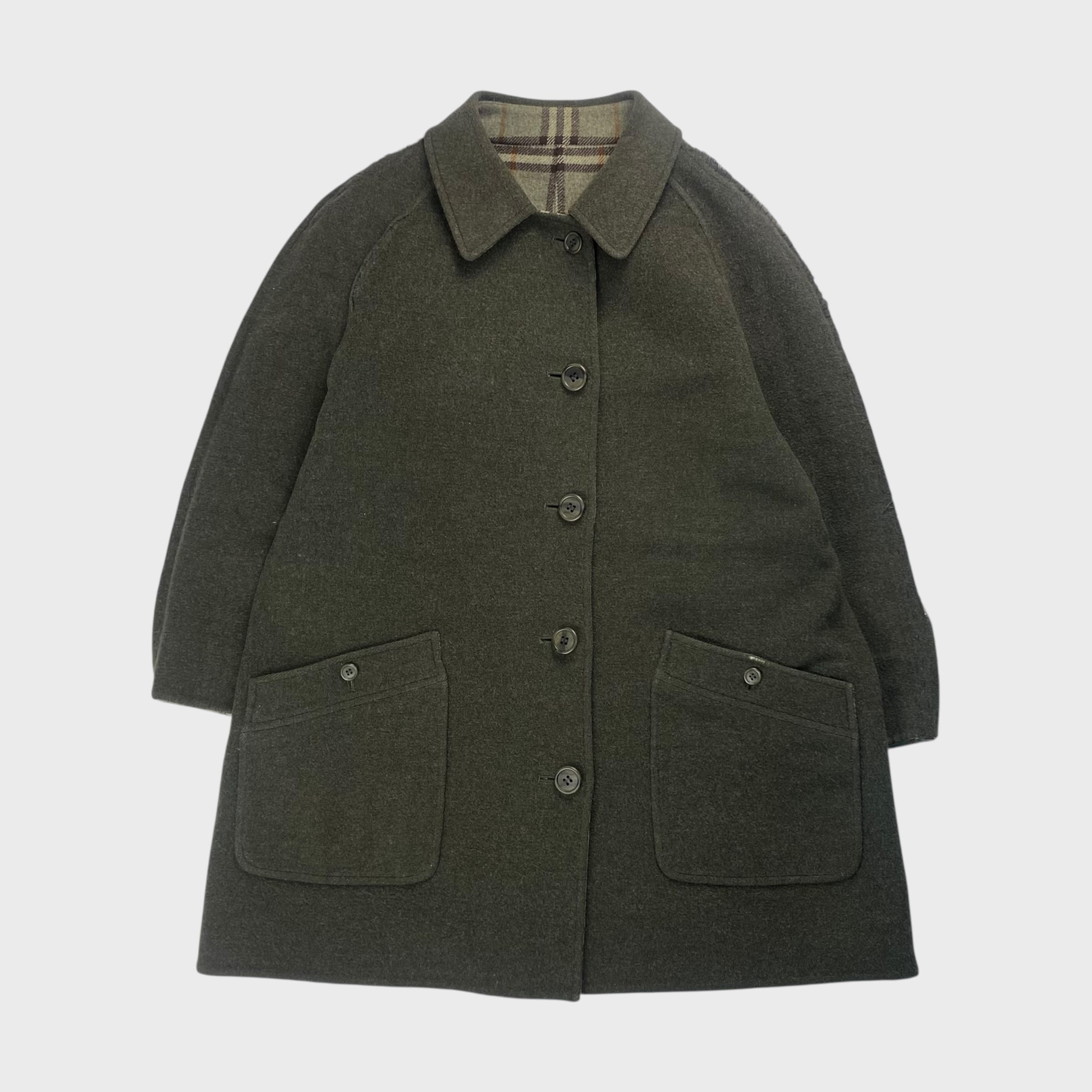 【90's】 バーバリー リバーシブル ウールショートコート ノバチェック M相当 dp6684