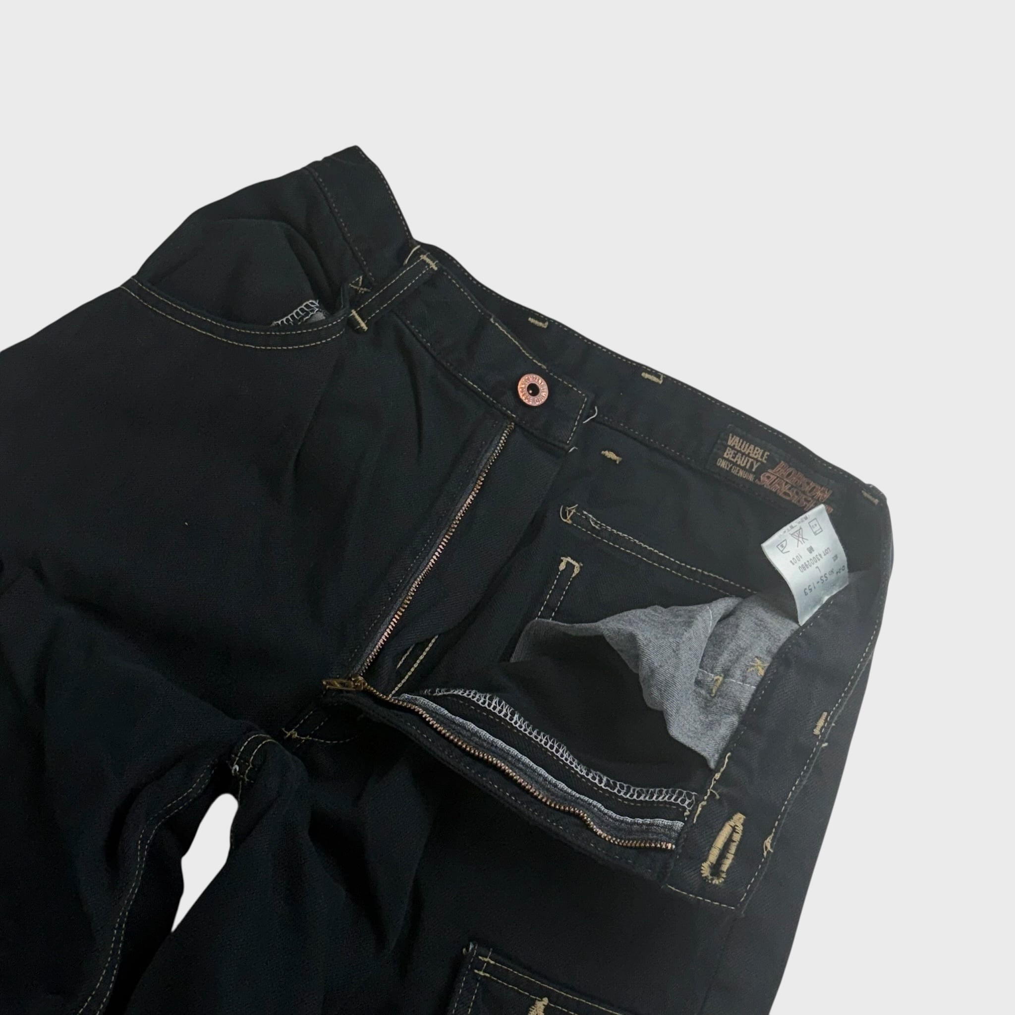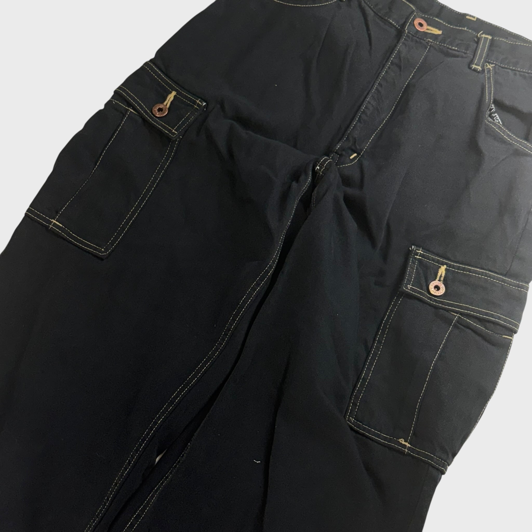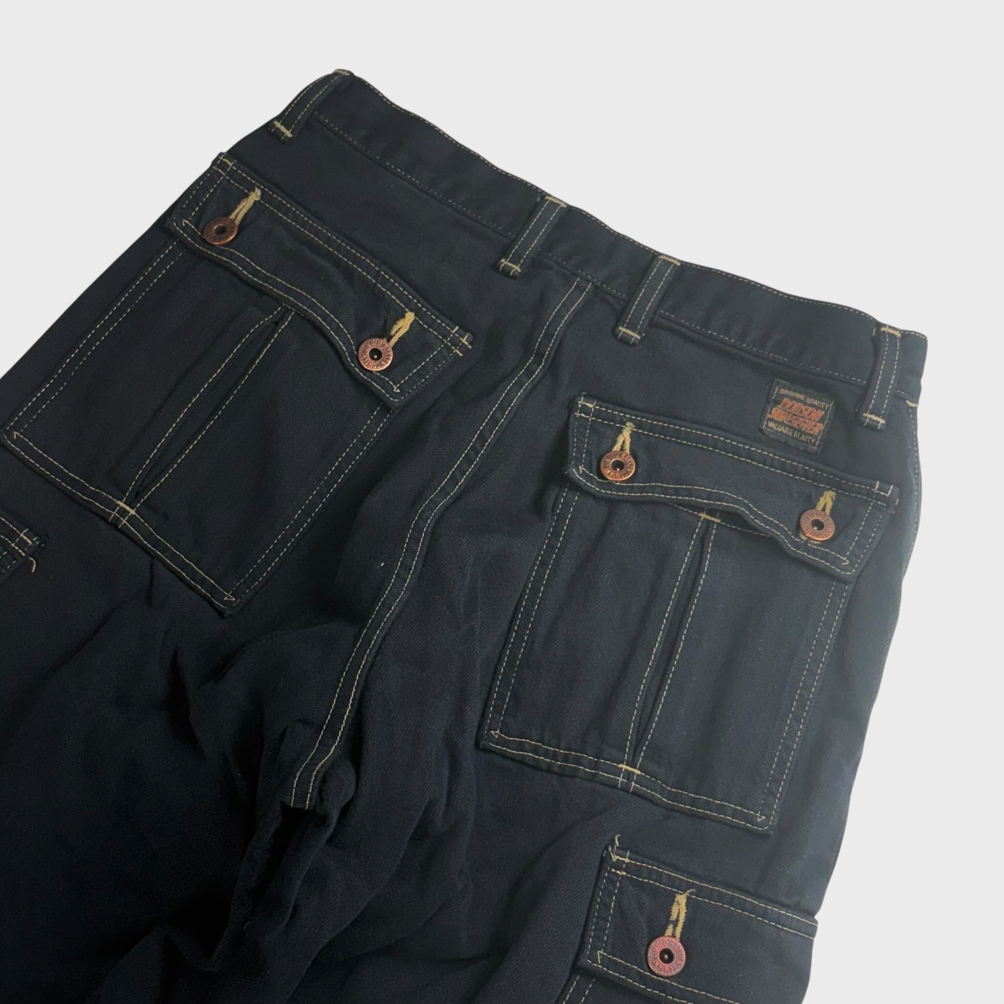 ボブソン 後染めブラック デニムカーゴパンツ W28相当 dp6636k