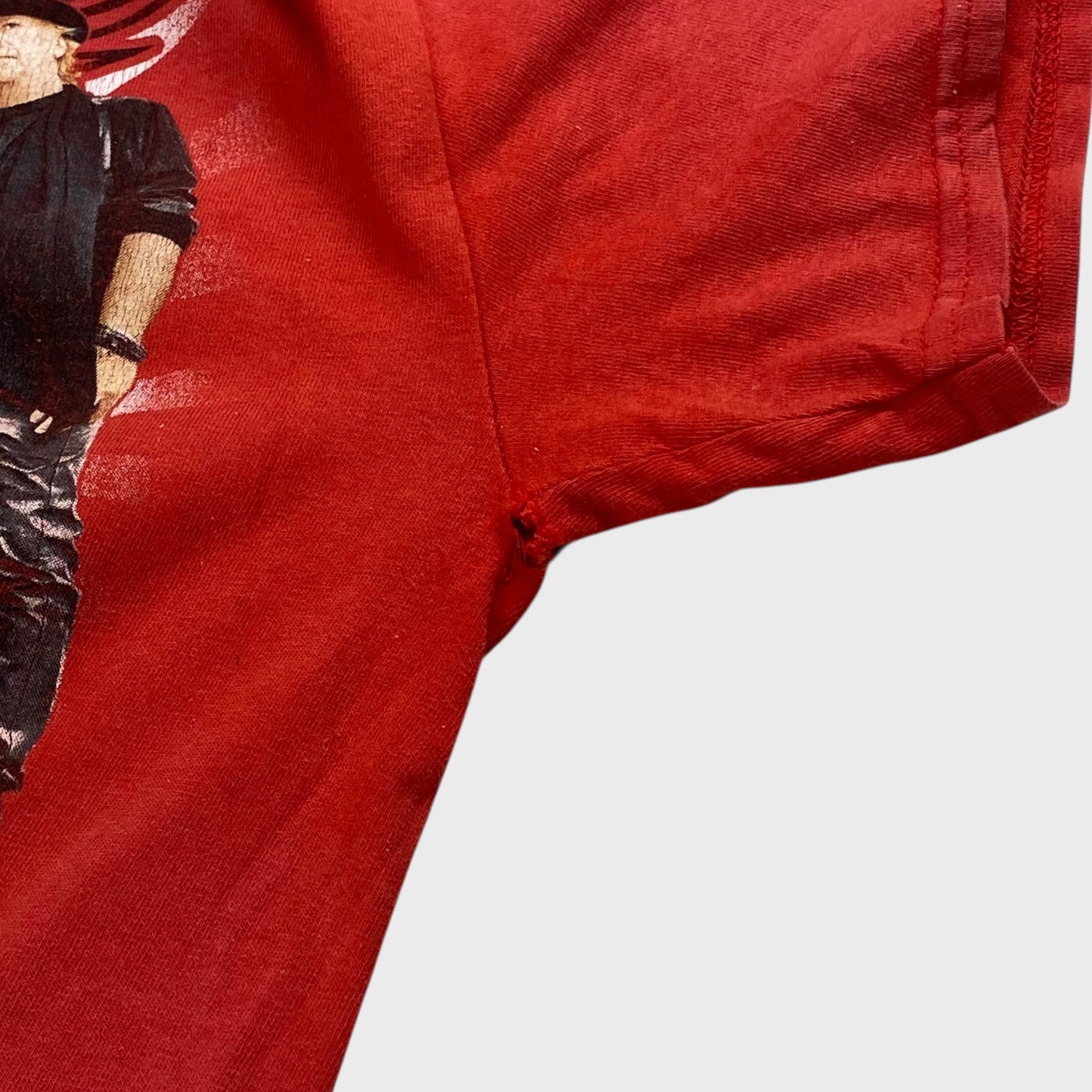 こちらは、日本で行われた際のツアーTで、真っ赤ではなく程よくフェードしたヴィンテージ感のある絶妙な色合いとなっております。