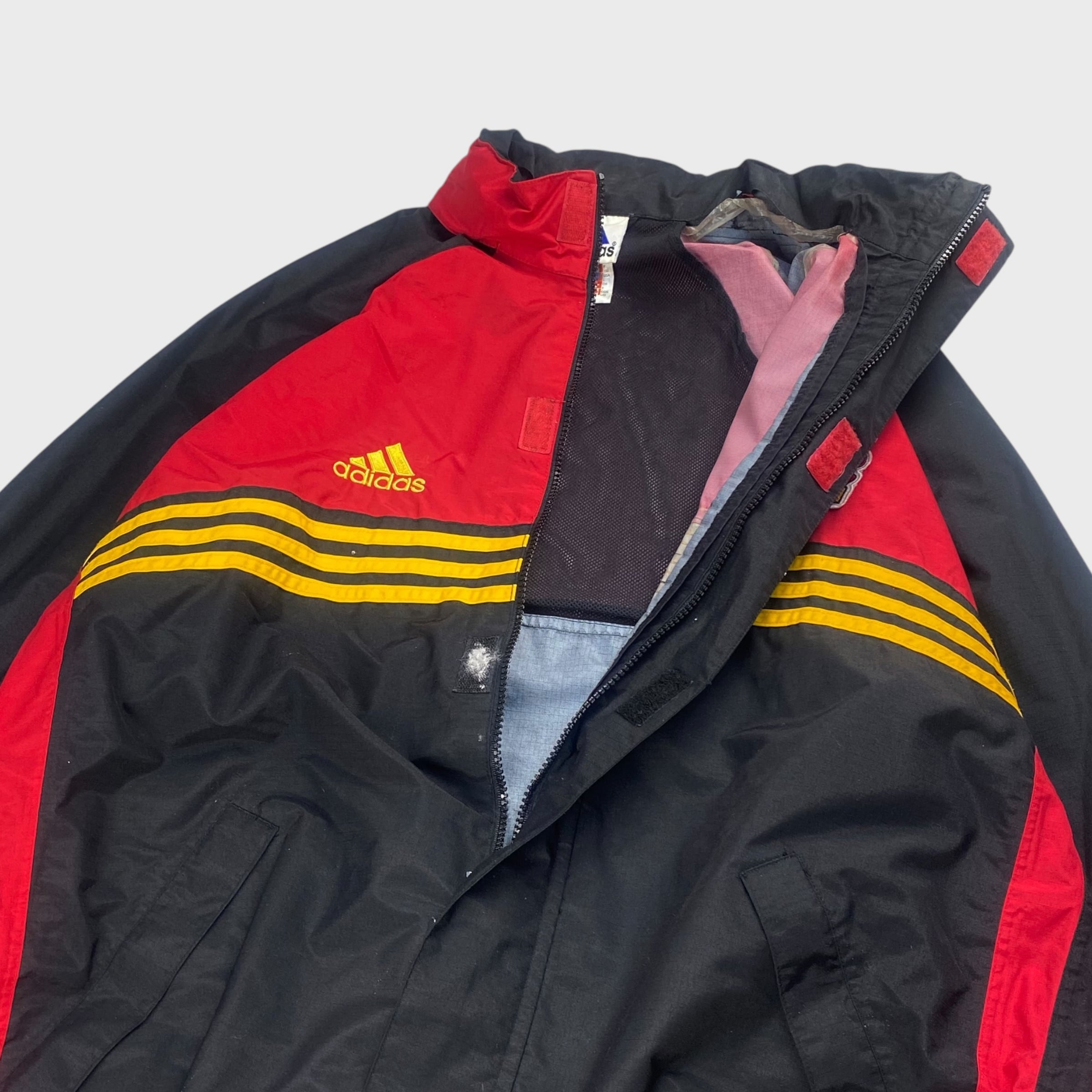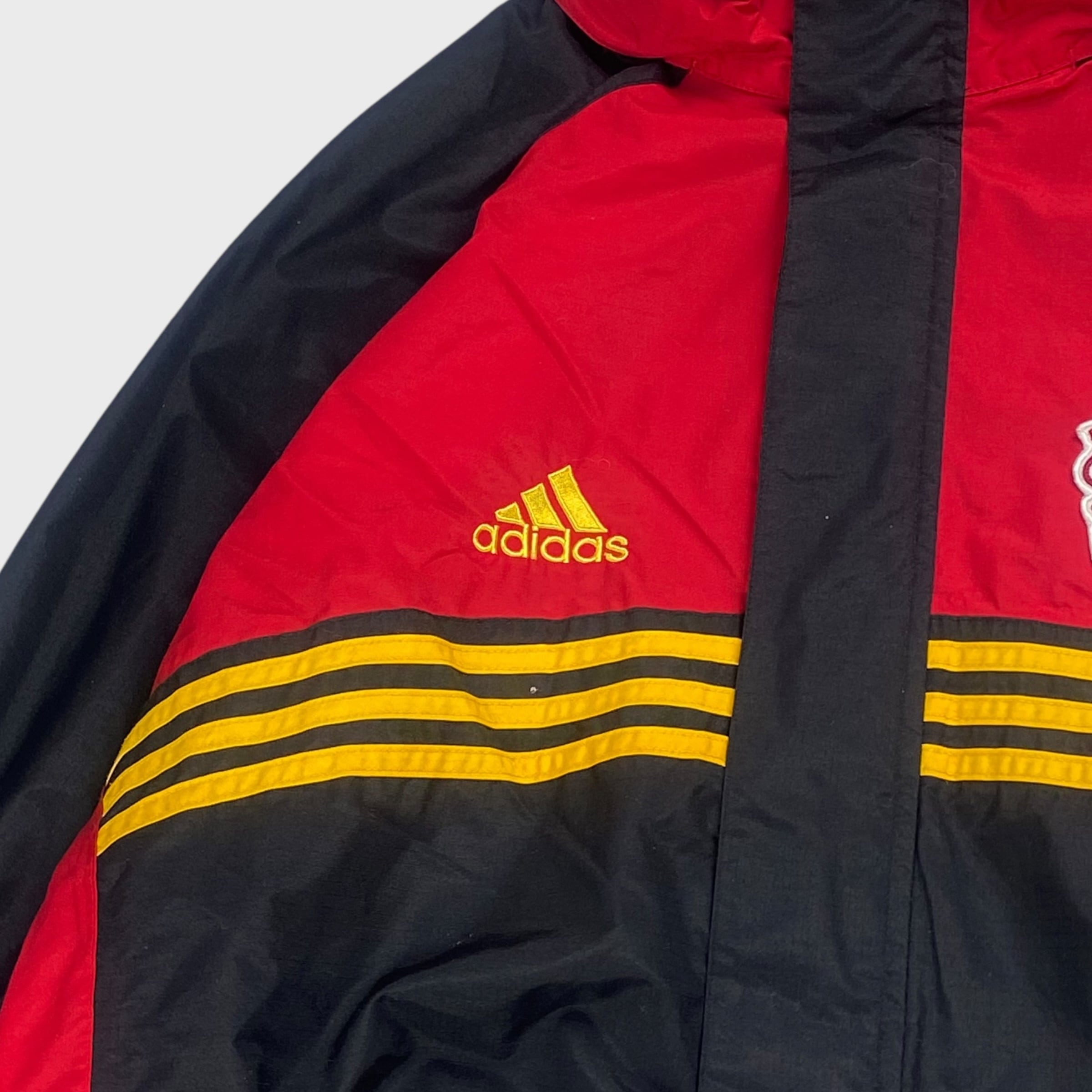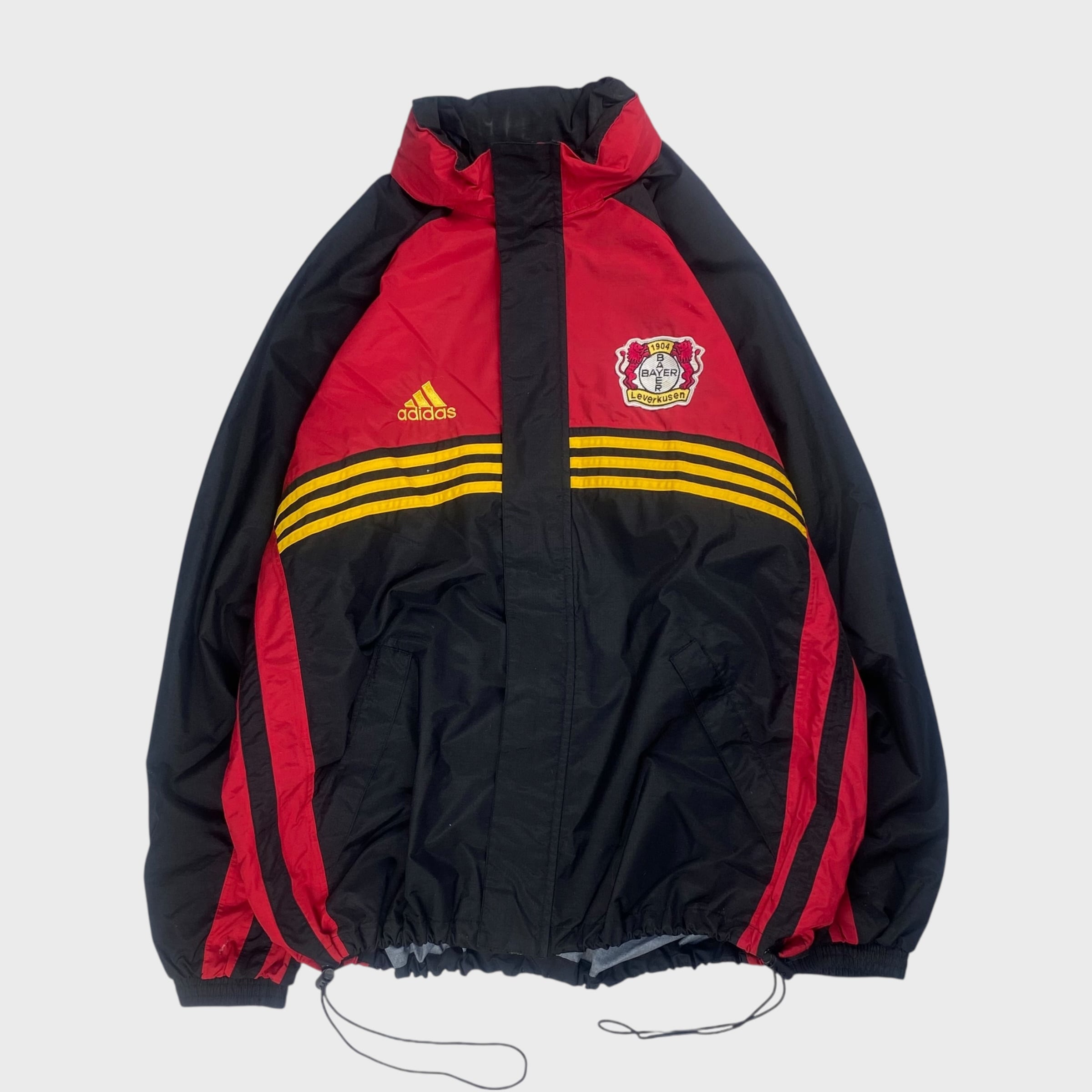 【90's】 アディダス バイエル・レバークーゼン サッカー ナイロンジャケット ドローコード付き フード付き XL相当 dp6841