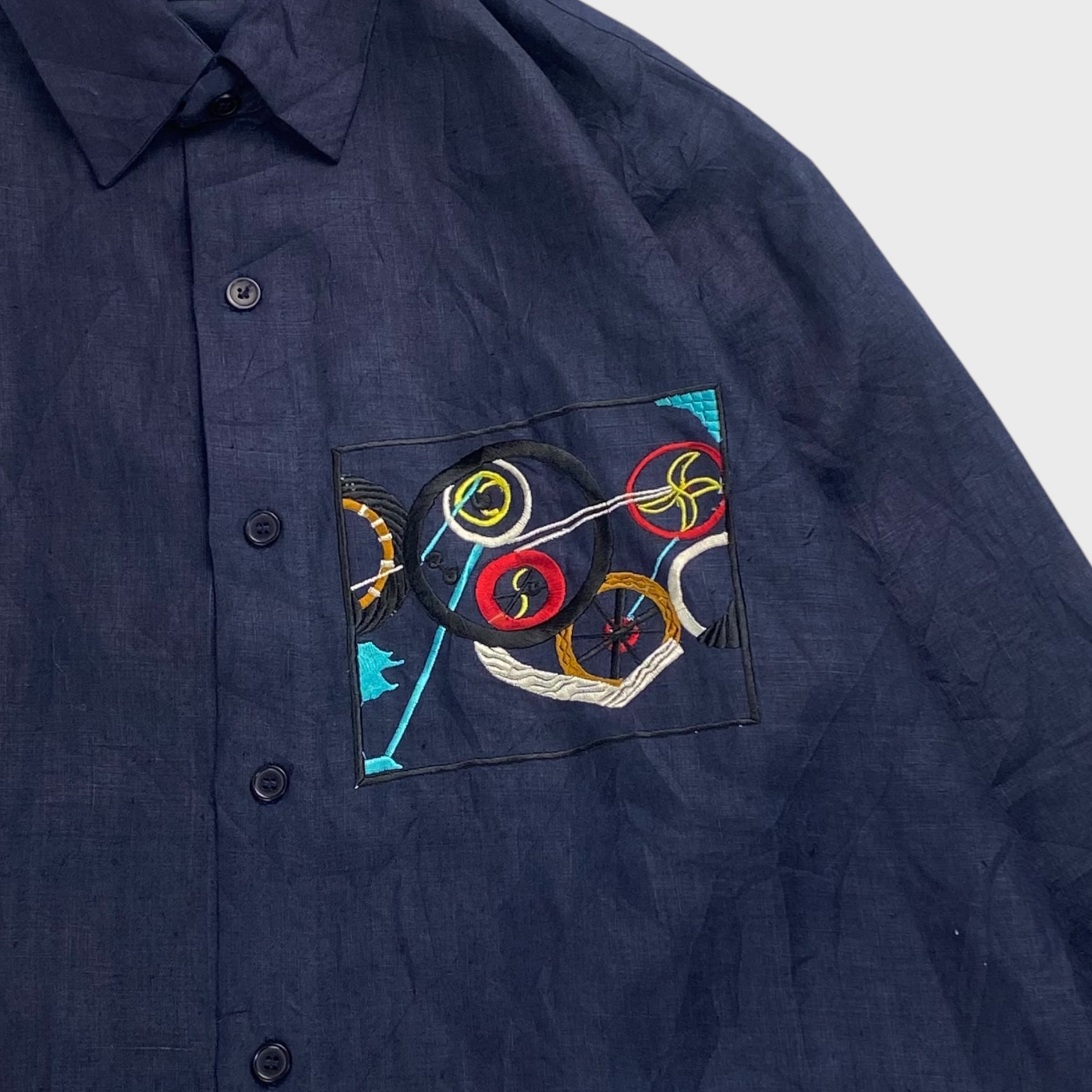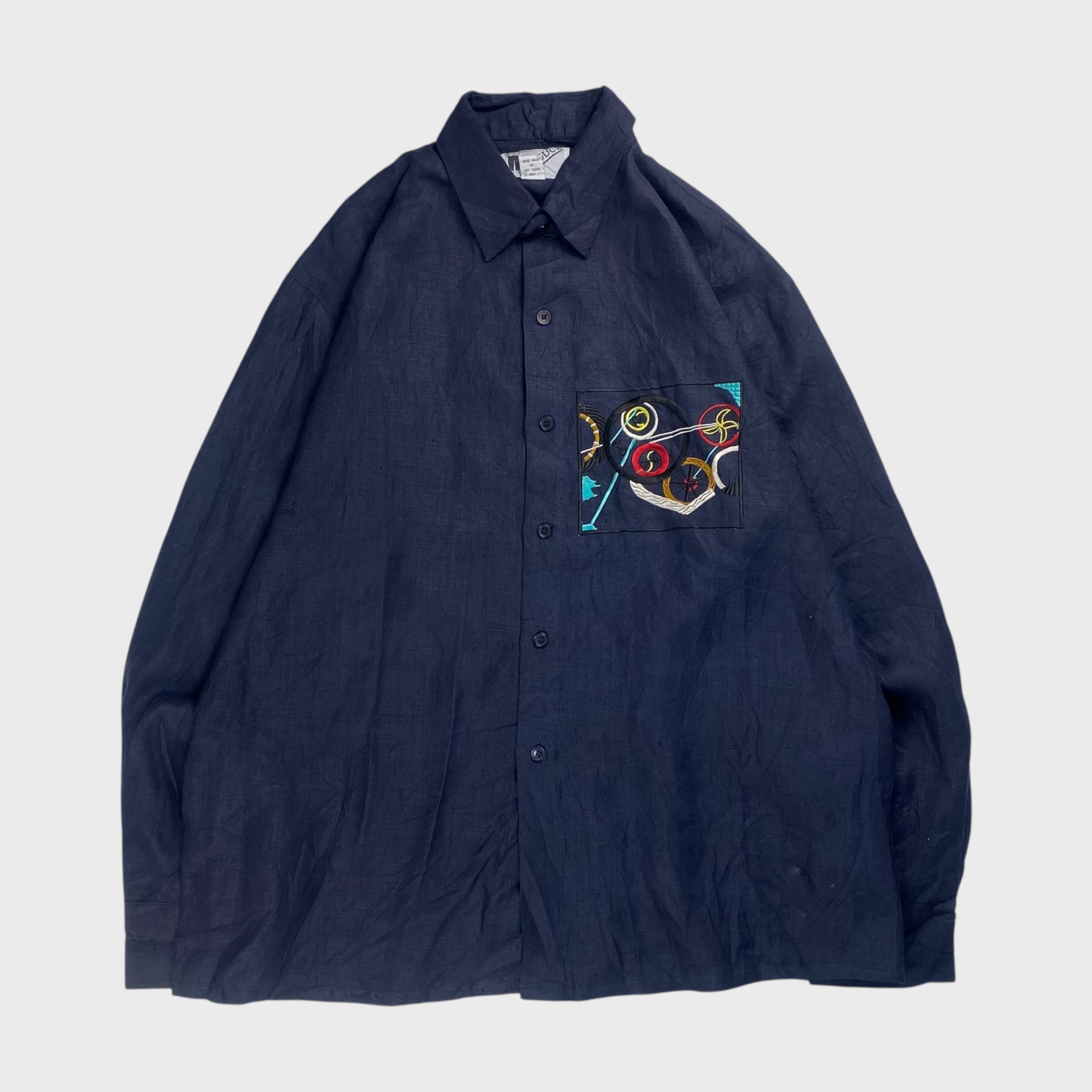 【90's】 グーチ L相当 長袖リネンシャツ アート刺繍 dp6869