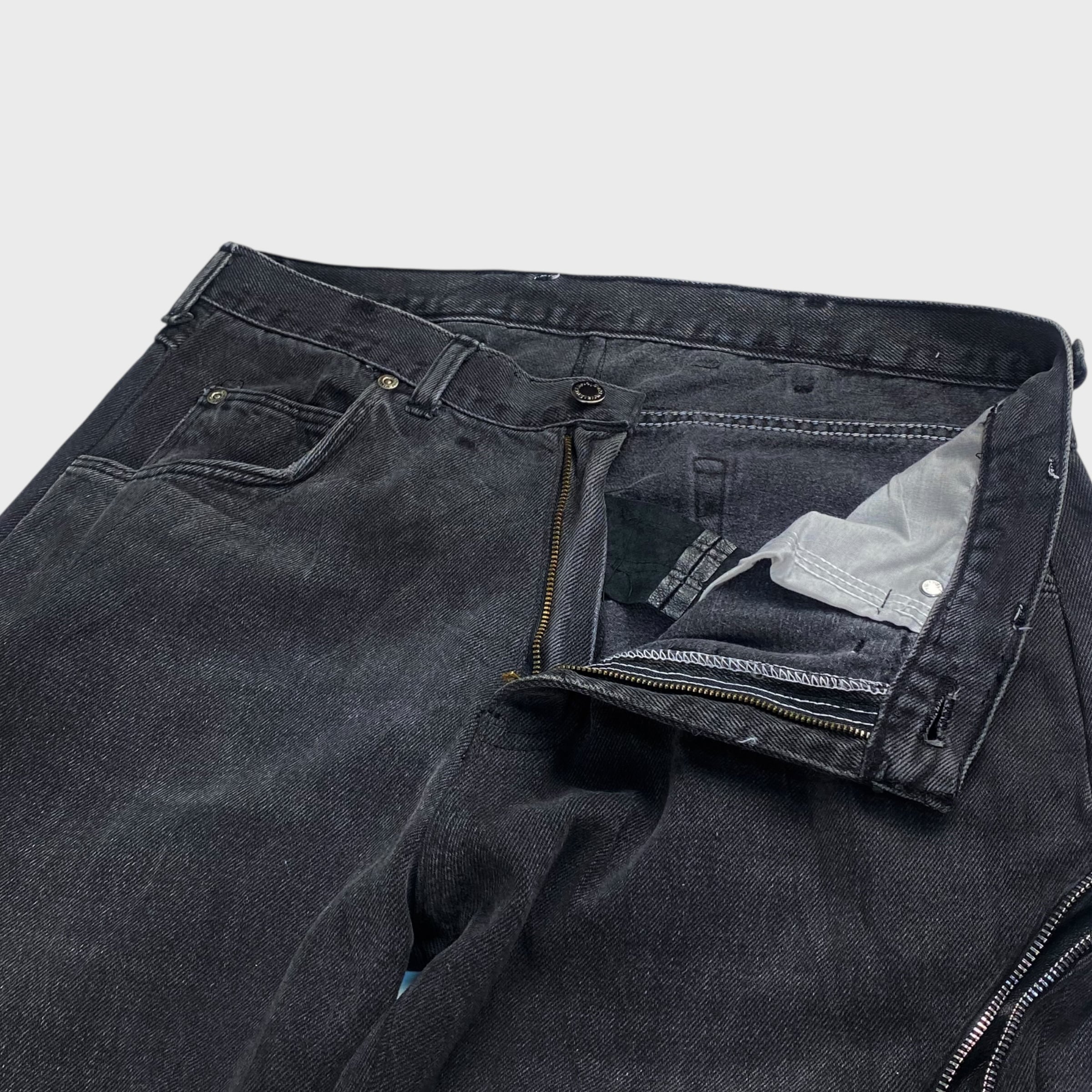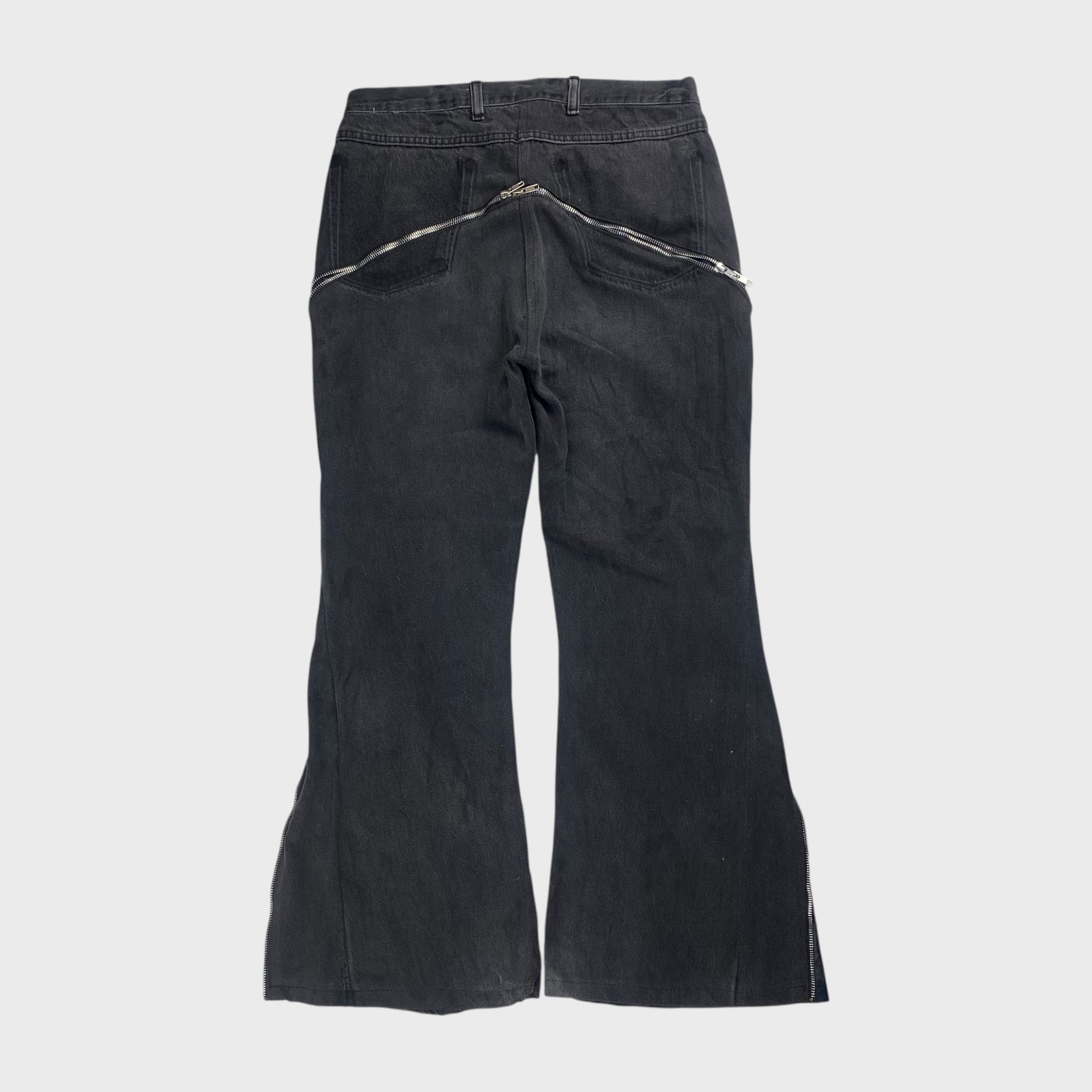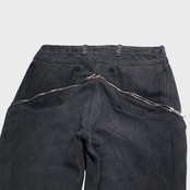 【REMAKE】【再構築】 デニム×レザー ジップアップフレアパンツ リメイク古着 W32相当 dp6926
