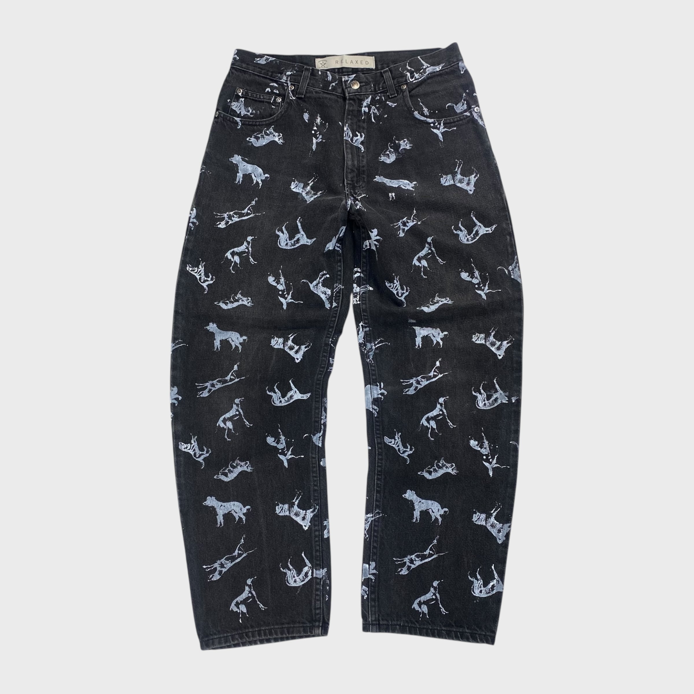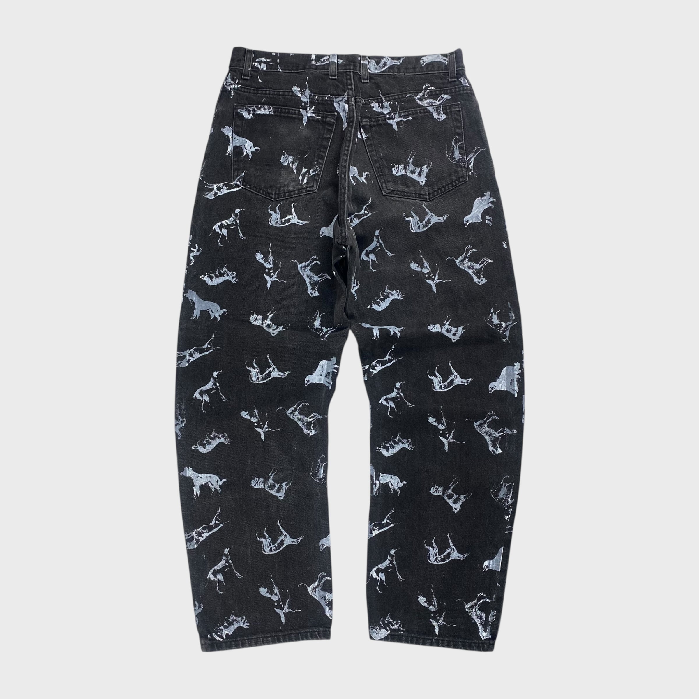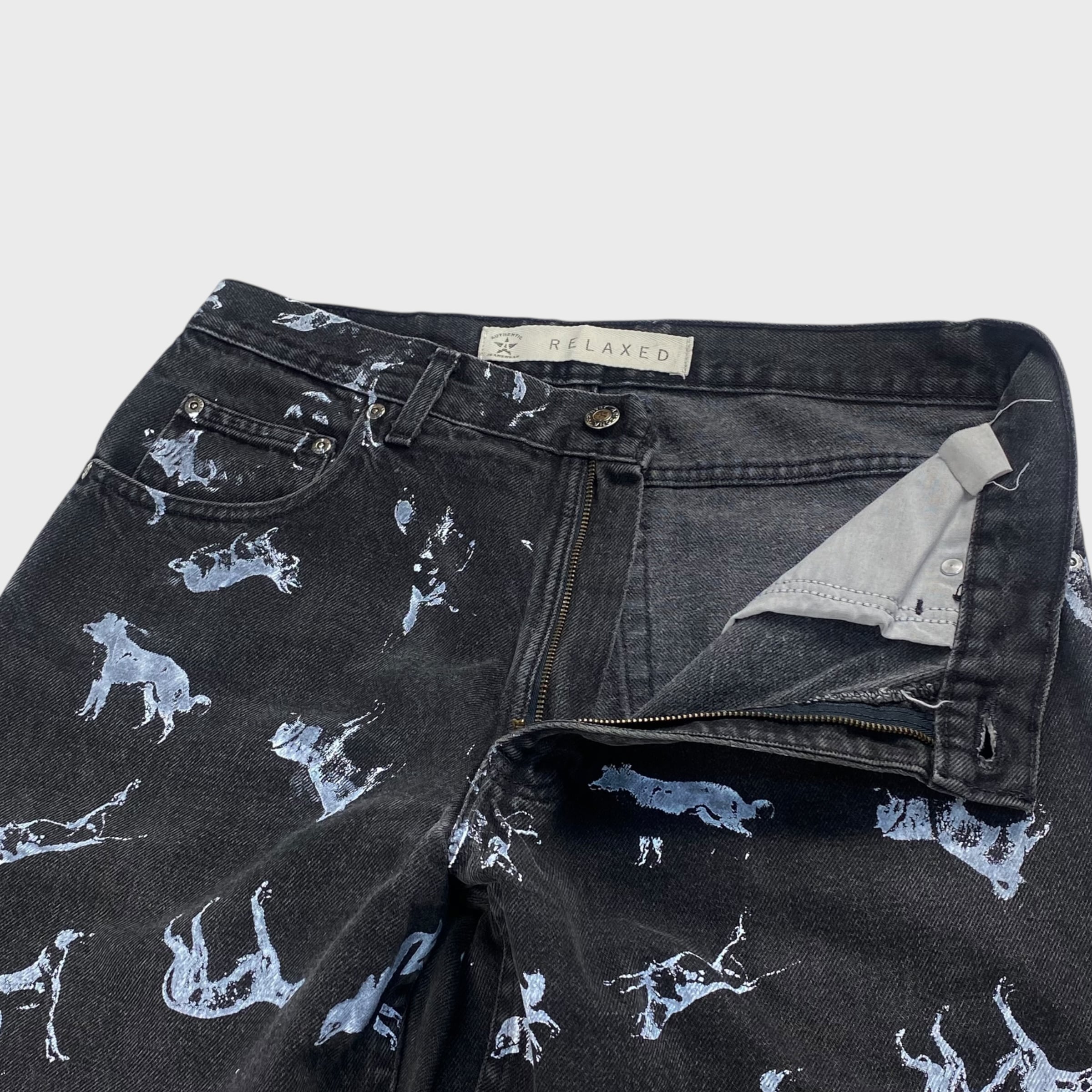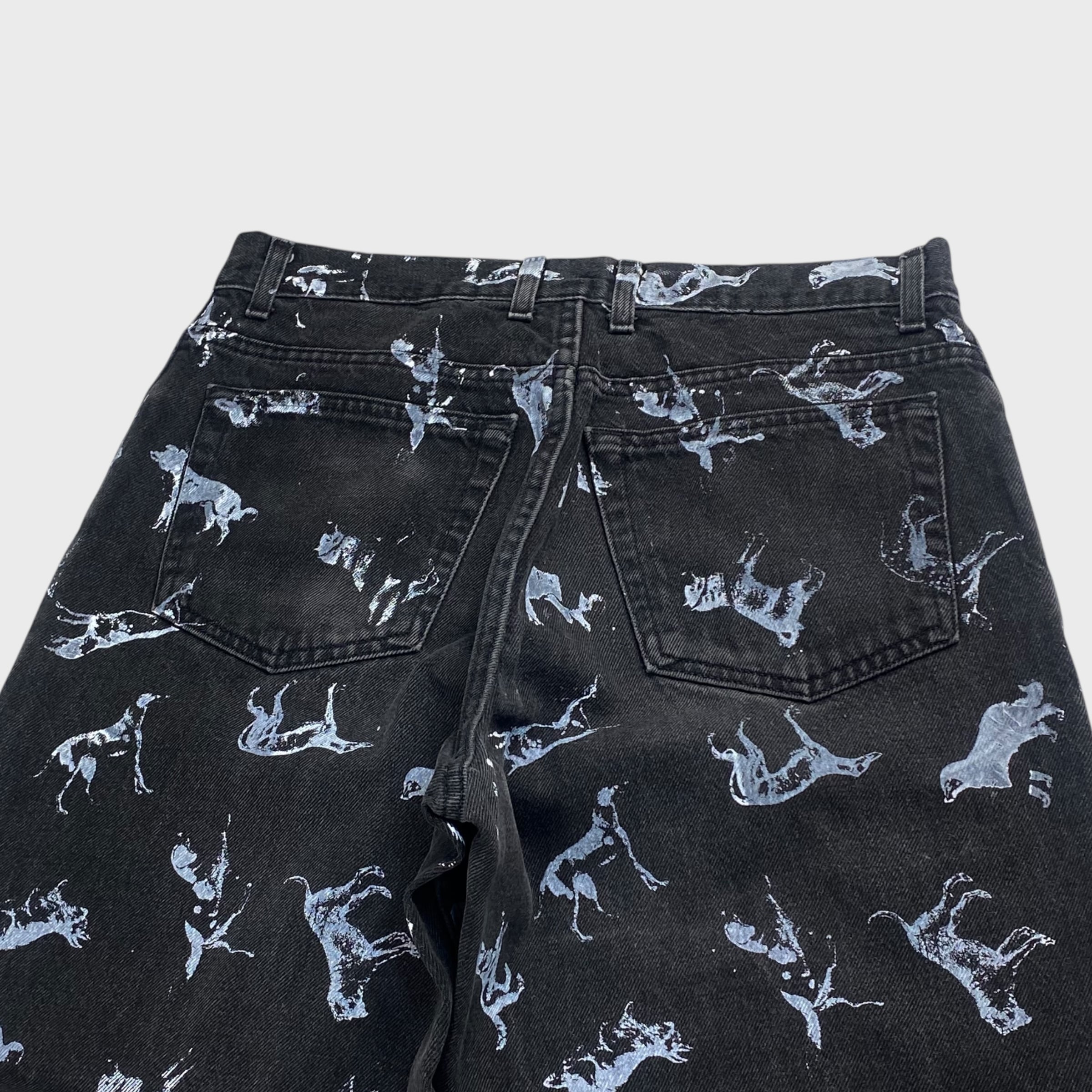 【REMAKE】 ペイントアート ブラックデニムパンツ リメイク古着 アニマル W32相当 dp6927
