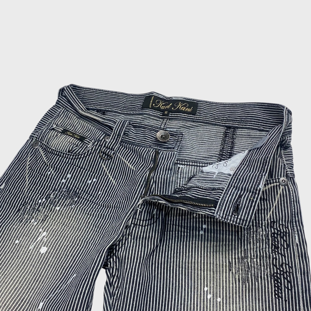 カールカナイ ペインターパンツ ヒッコリーストライプ ペイント加工 W32 dp6923