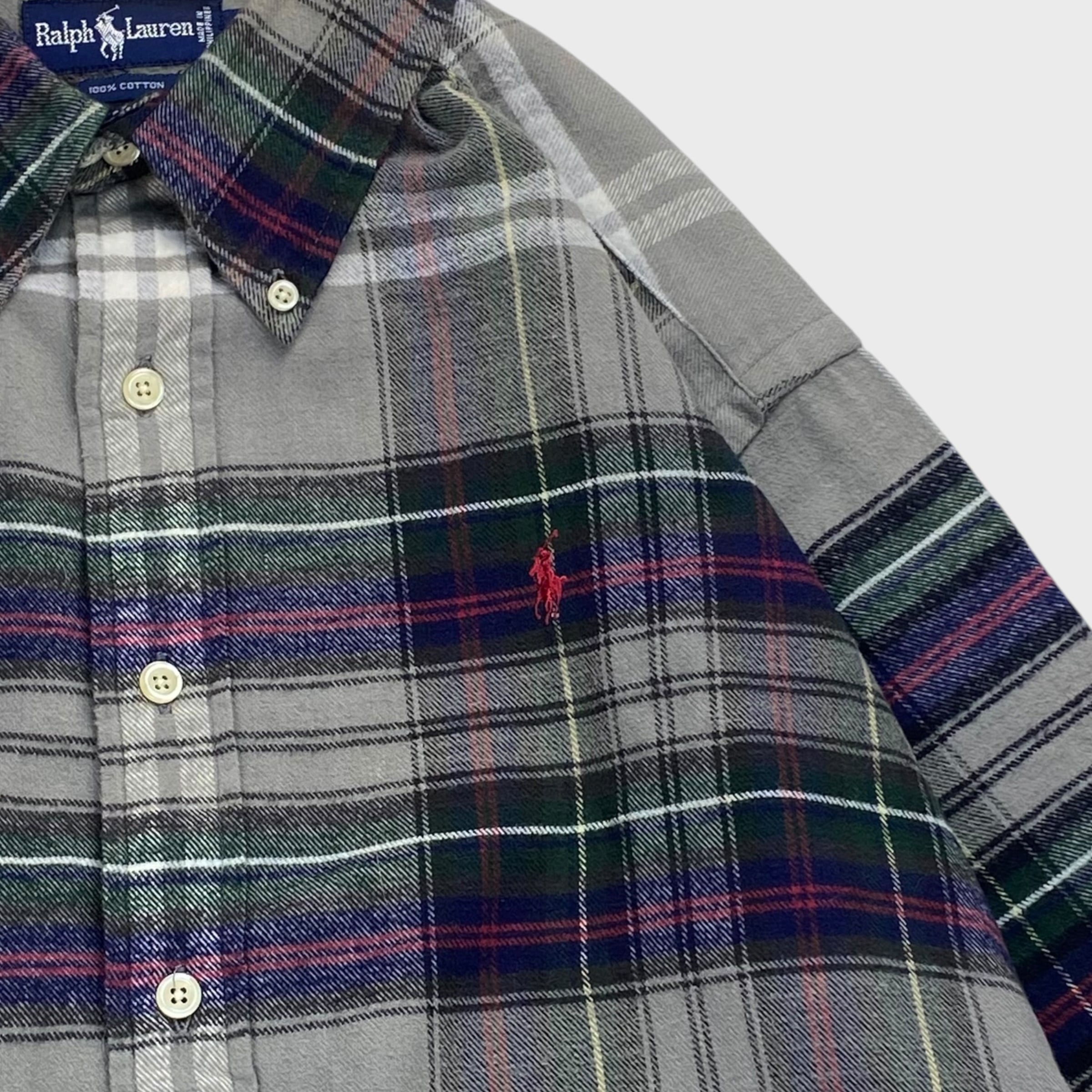 ラルフローレン フランネルシャツ マドラスチェック 長袖ネルシャツ ボタンダウン BDシャツ XL dp6968