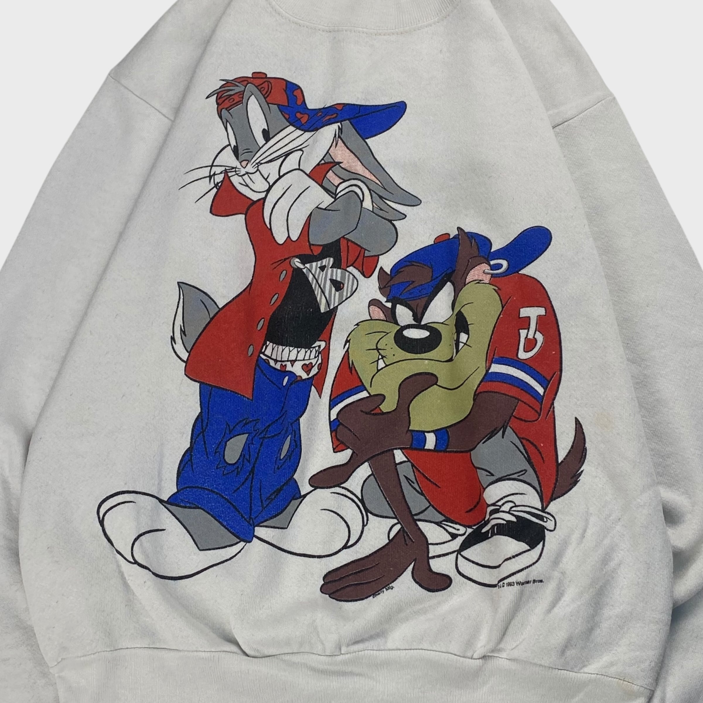 【90's】【USA製】 ルーニーテューンズ ダズマニアン バックスバニー スウェット トレーナー キャラクタースウェット S相当 dp7009