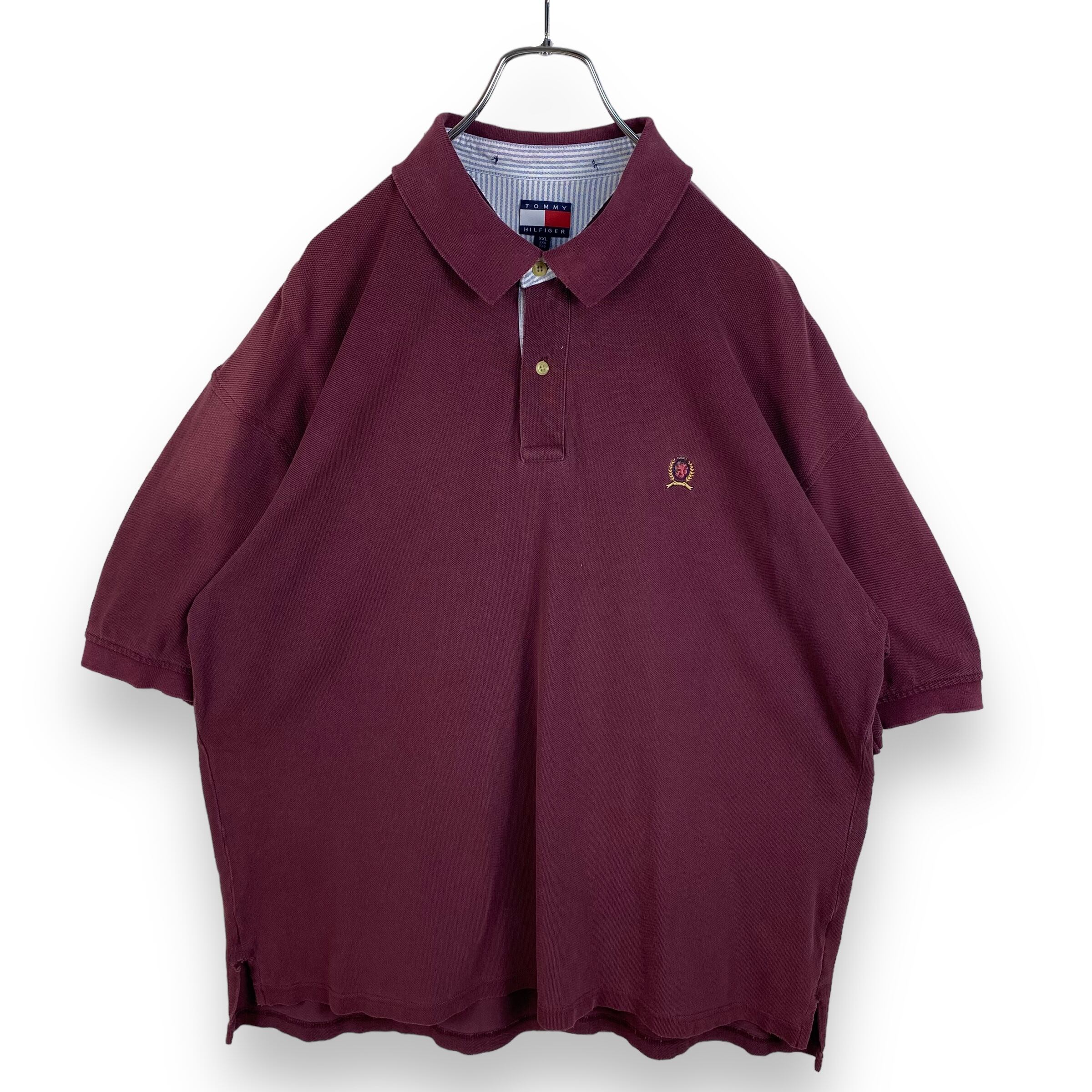 【90's】 XXL トミーヒルフィガー 半袖ポロシャツ 鹿の子織り 無地 ロゴ刺繍