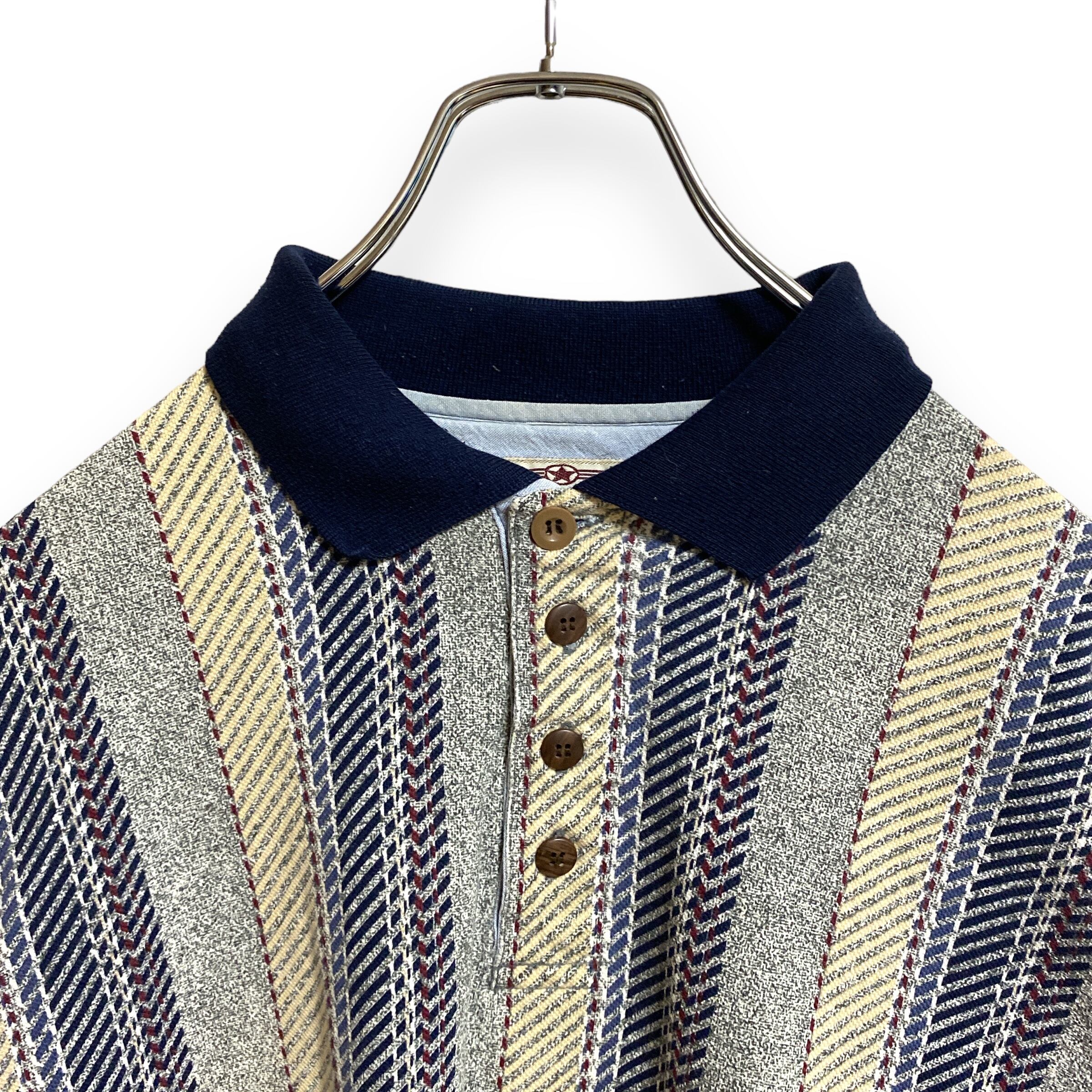 古着 コットンミル 長袖ポロシャツ ストライプ柄 総柄 ビックシルエット
