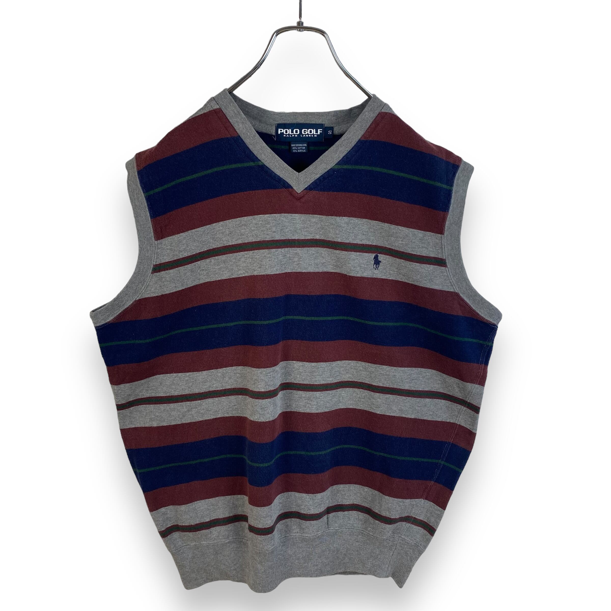 【90's】 S ポロゴルフ ラルフローレン ボーダーVネックベスト 裏起毛