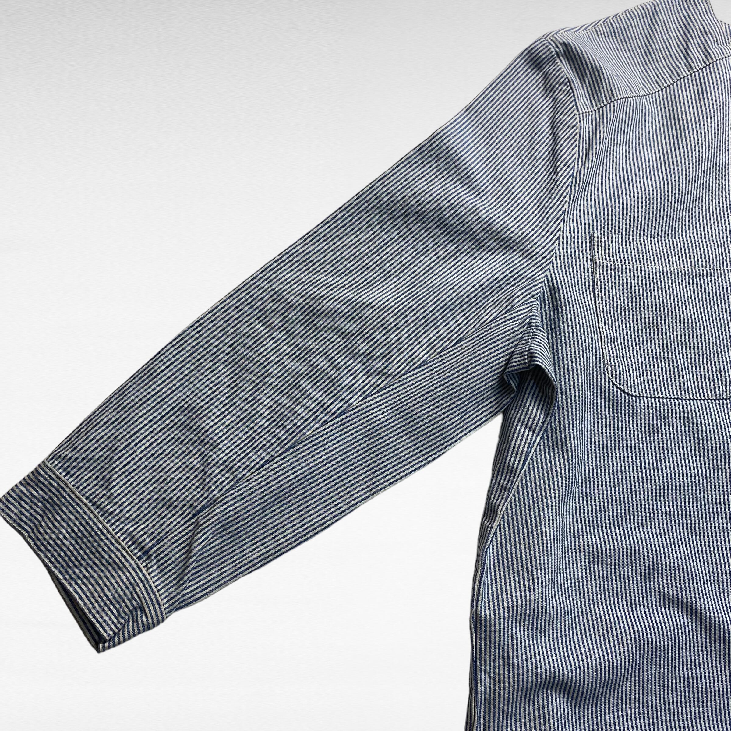 アメカジの定番であるヒッコリーストライプ。生地もタフな作りで、程よい生地の厚みなので、少し肌寒い季節などのメインやインナーとしても大活躍かと思います。