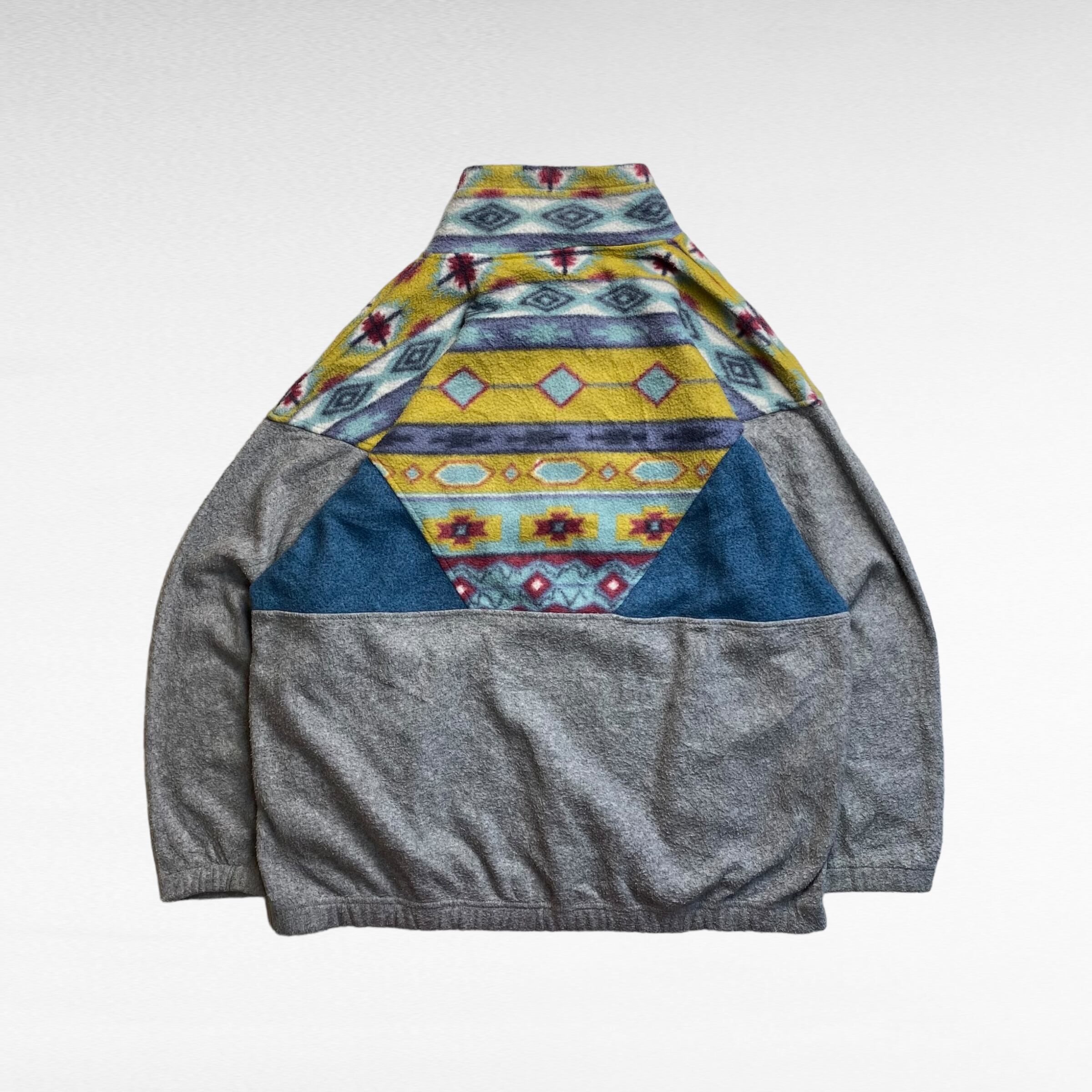 【90's】 ハーフジップフリース スウェット L ネイティブ柄 切り替えデザイン