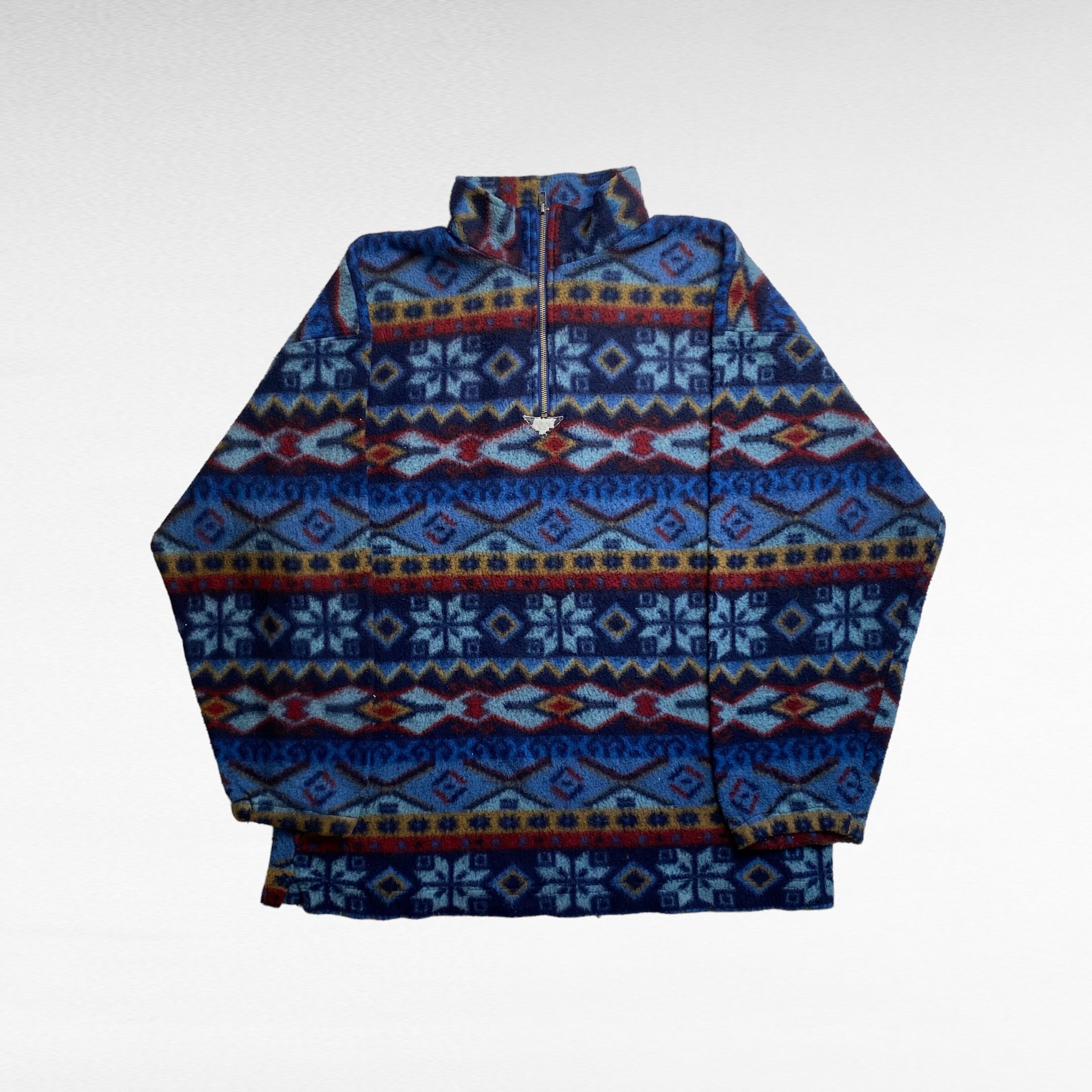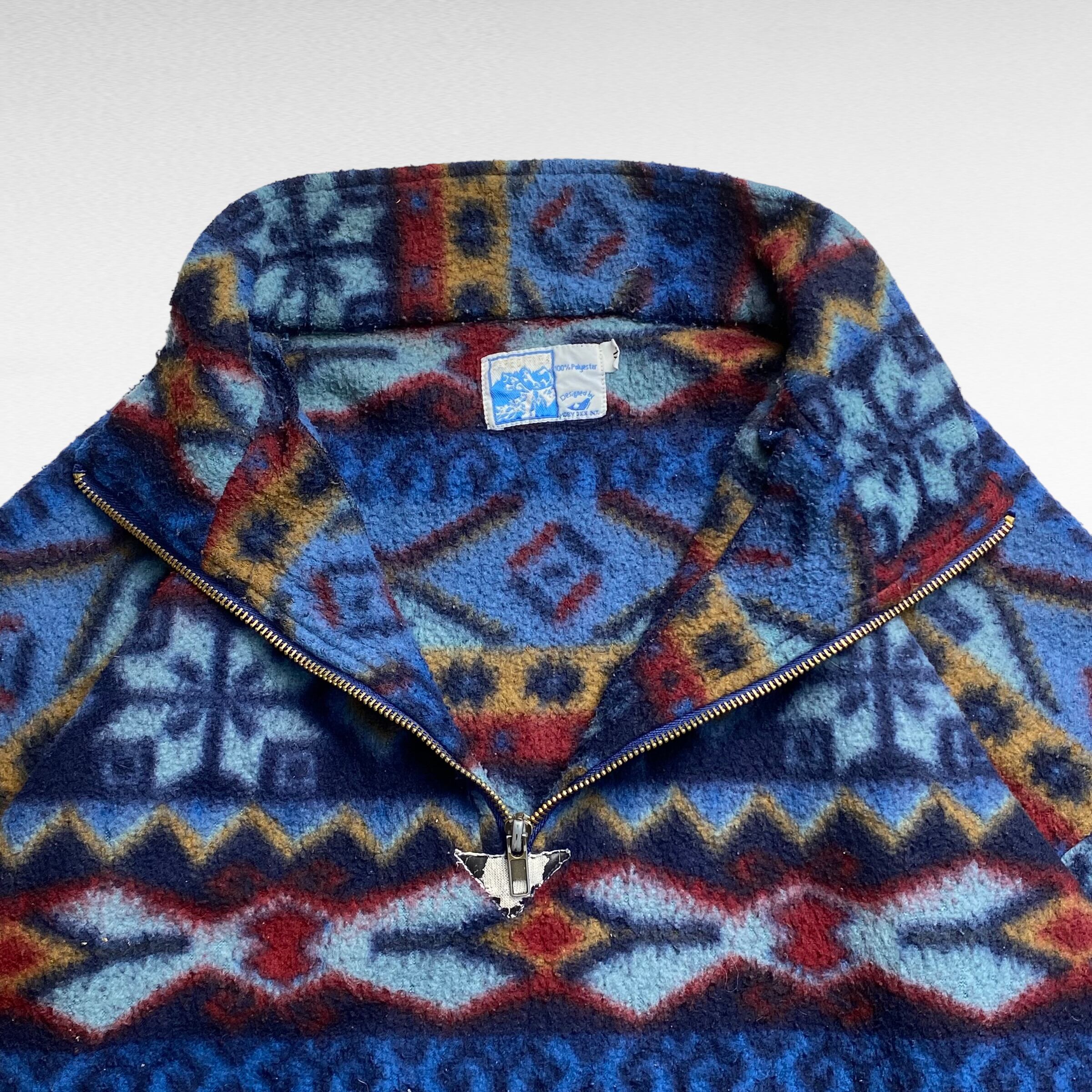 【90's】 ハーフジップフリース スウェット XL ネイティブ柄 総柄