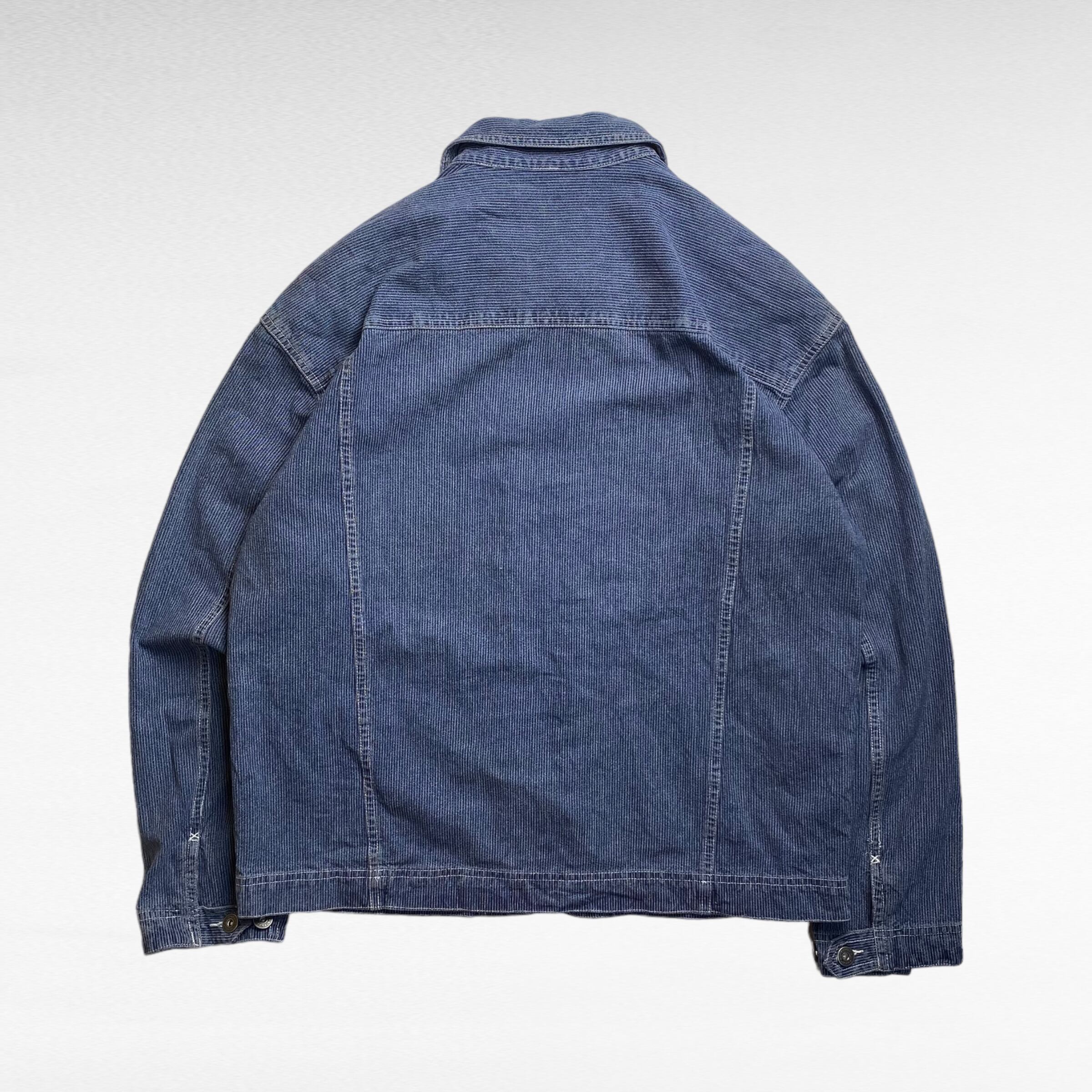 ヒッコリーストライプで落ち着いた大人っぽい配色。そこまで厚手ではない為、重ね着でレイヤードが楽しめます。
