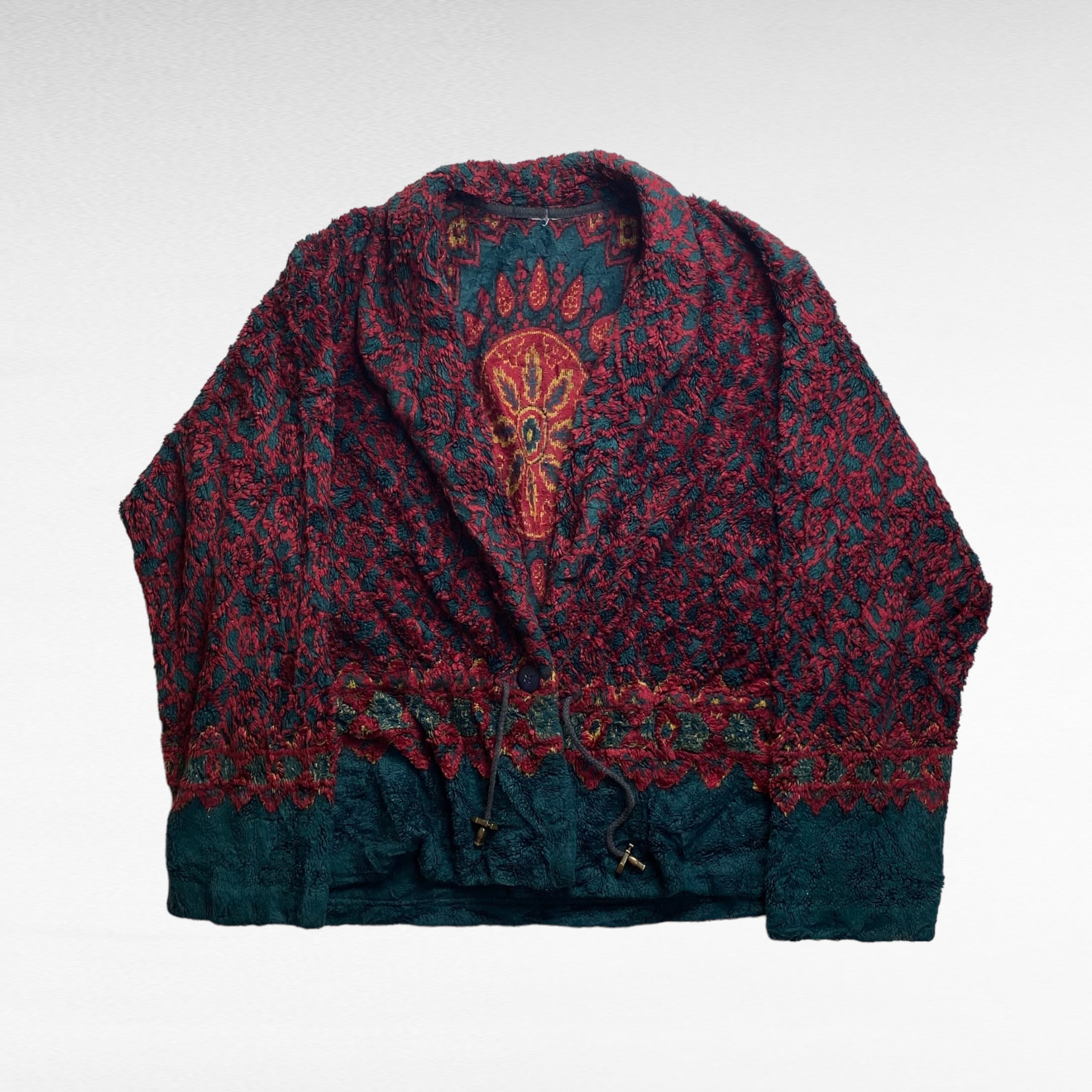 USED 総柄 フリースジャケット XL相当 ウエストコード付き