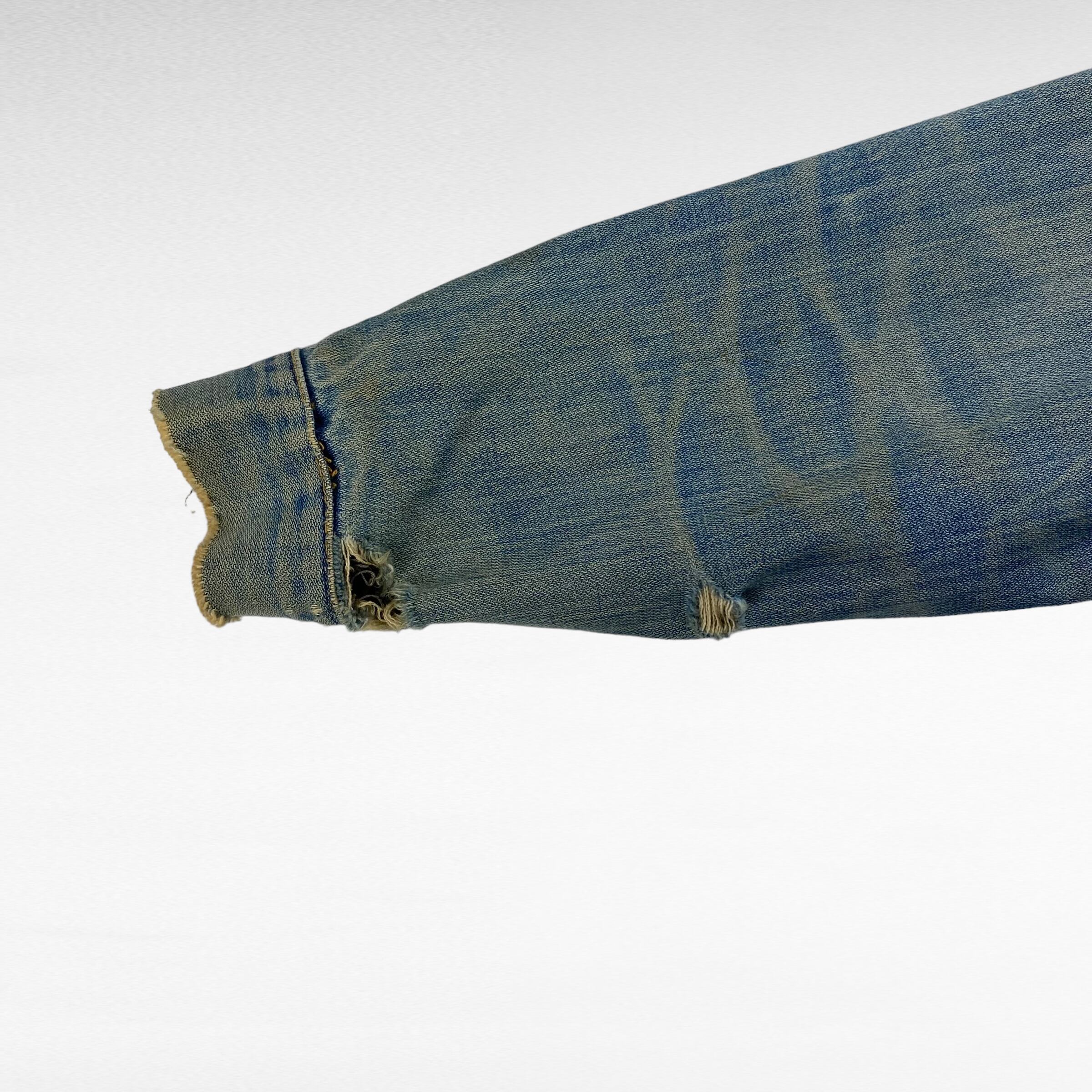 スタンダードな3rd型のデニムジャケットとはまた違ったディテールで胸ポケットはフラップ付き。