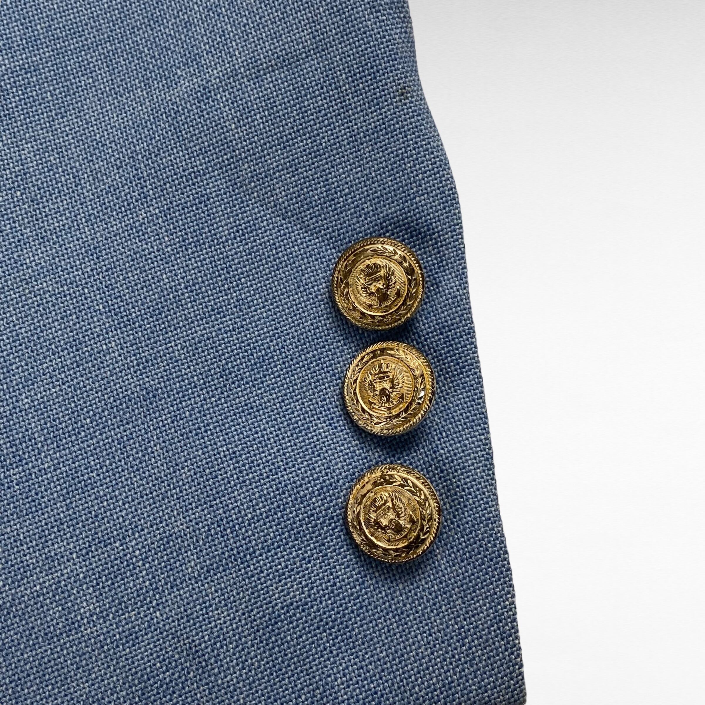 鮮やかなブルーカラーのテーラード。意外と探すとこのカラーの個体は少なく、これ1着でドレス感強めにできるので非常におすすめです。