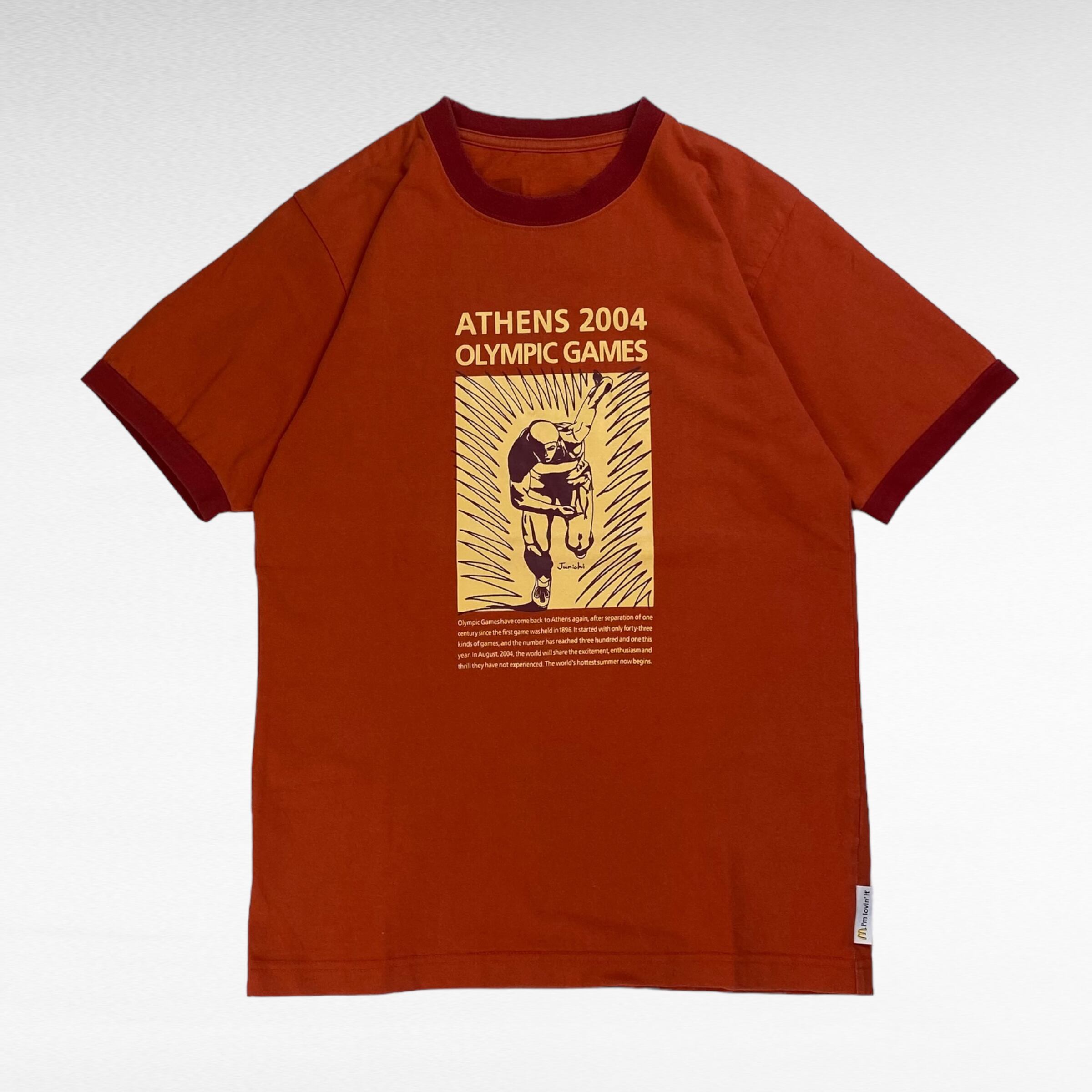 【00's】 アテネオリンピック M相当 リンガーTシャツ 半袖 企業ロゴ