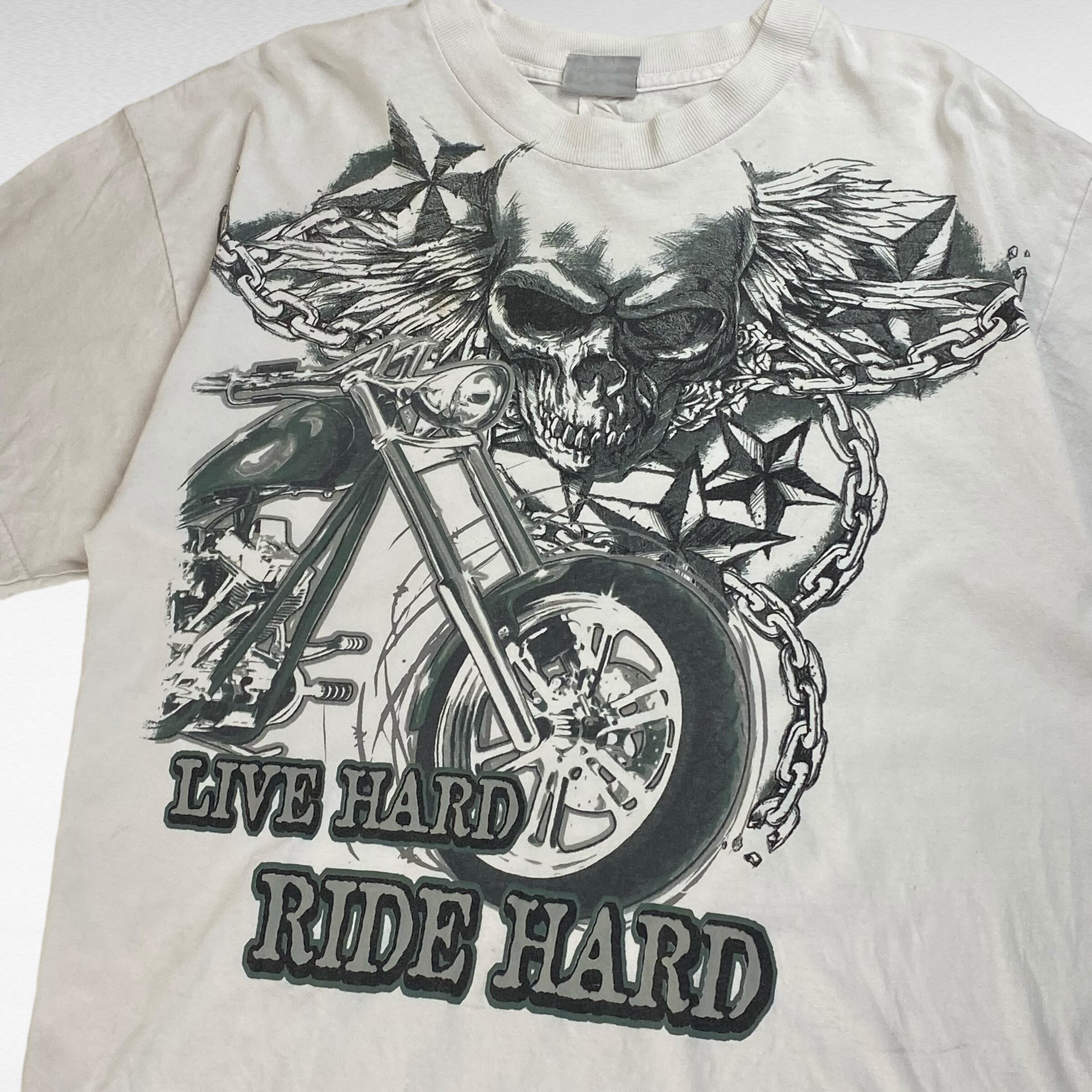 【90〜00's】 NATIONAL HERITAGE L スカルプリント バイク 半袖Tシャツ