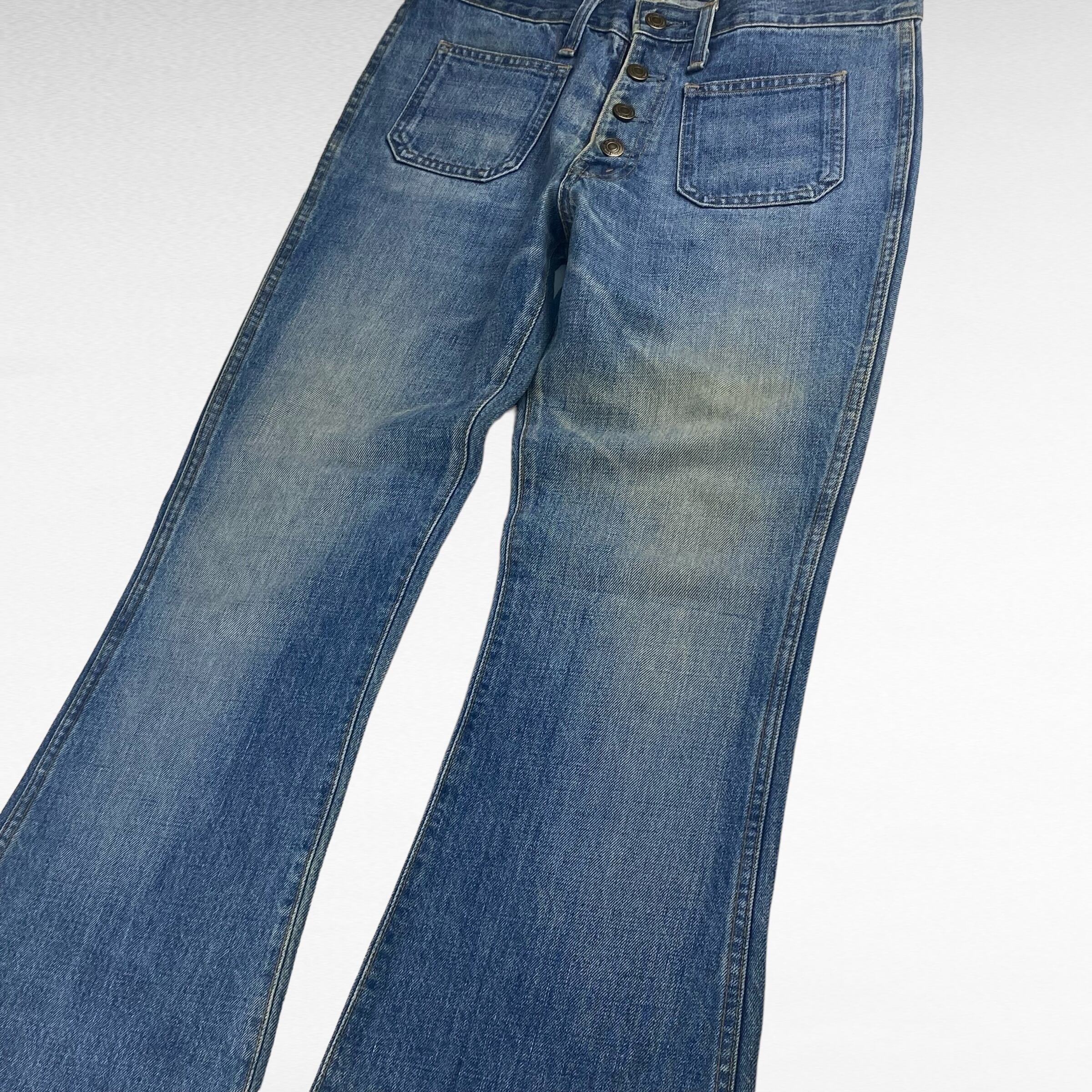 この年代ならではのベルボトムシルエットで、かなり裾幅が広がった絶妙な1本。