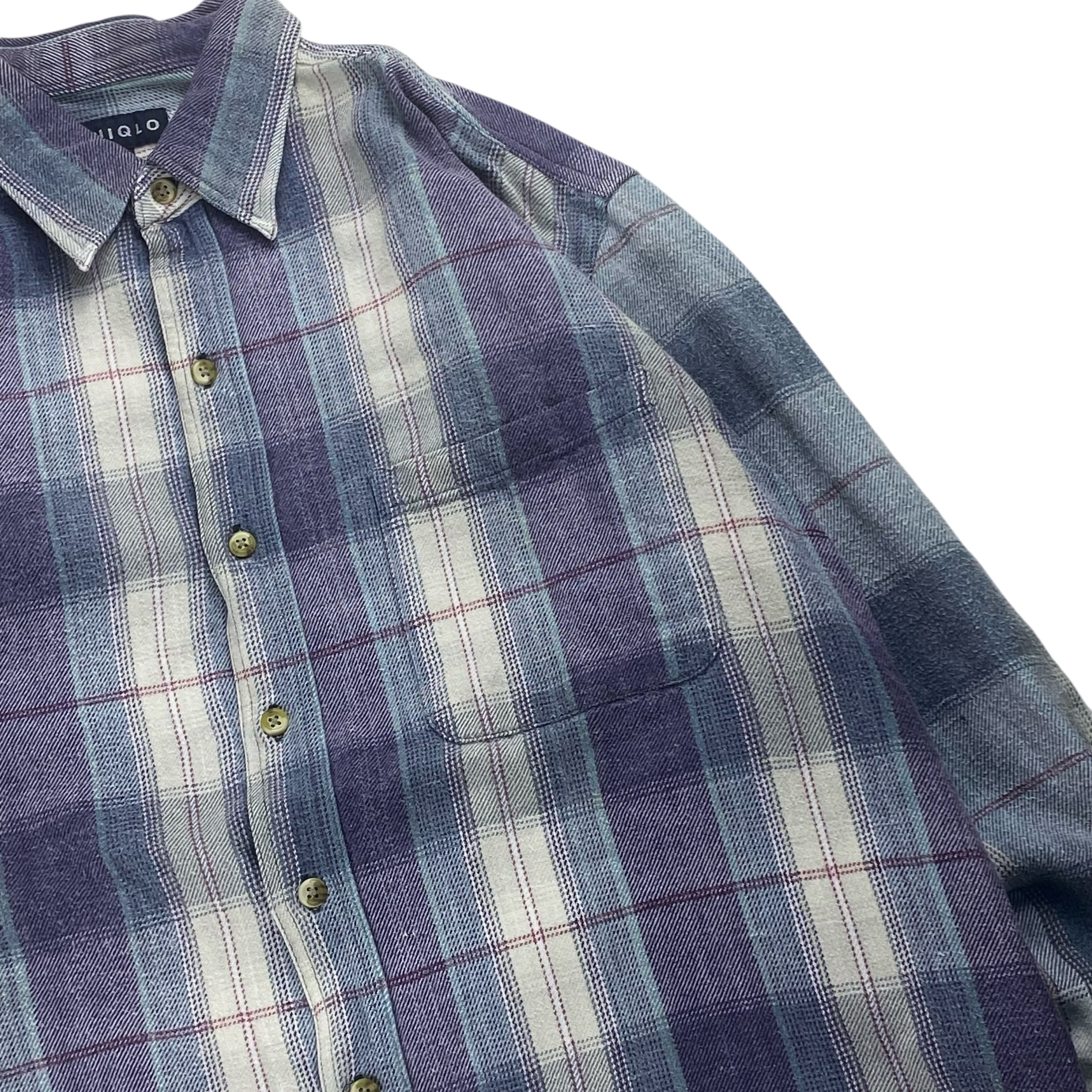 【90's】ユニクロ OLD UNIQLO L相当 チェック柄 長袖ネルシャツ フランネル