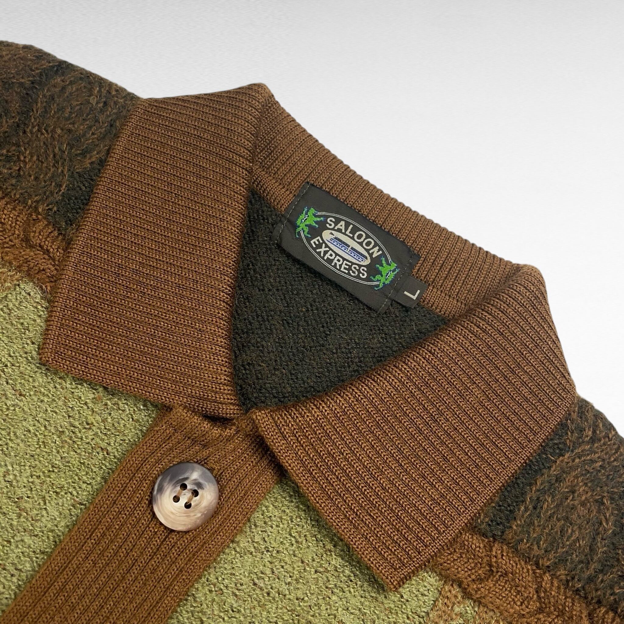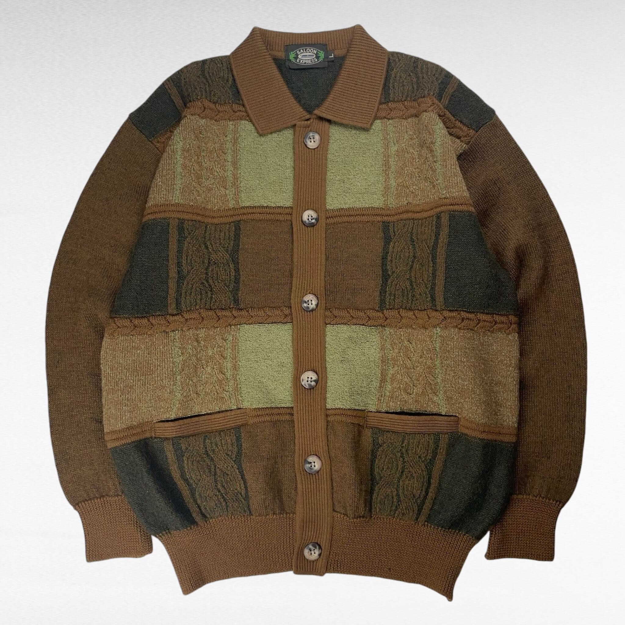 USED サルーンエクスプレス L 襟付きカーディガン ニット マルチカラー
