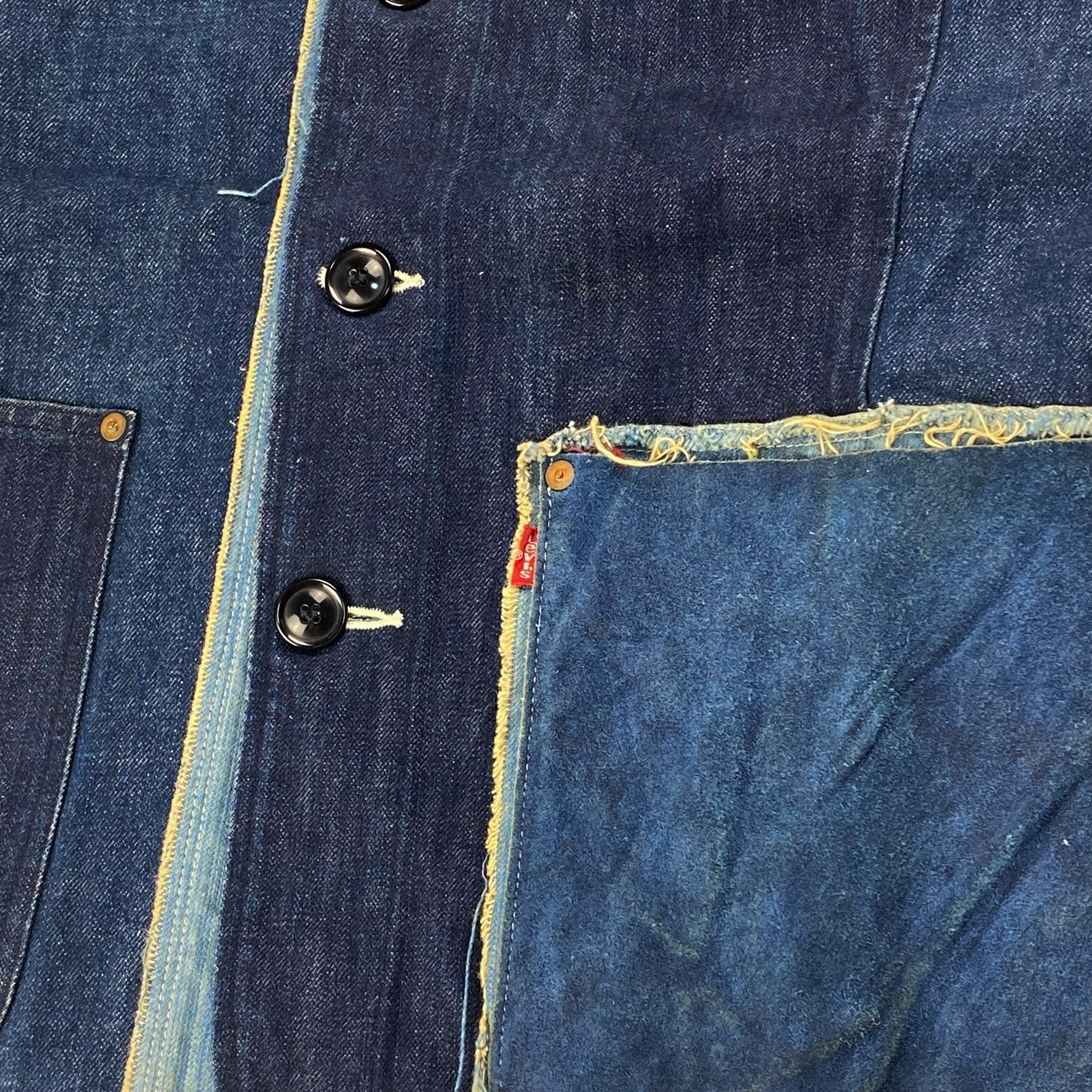少し変わり種のこちらの個体は、リメイクのようなパッチワークデザインで、細かいところまで拘りがみられる個性的な1着。