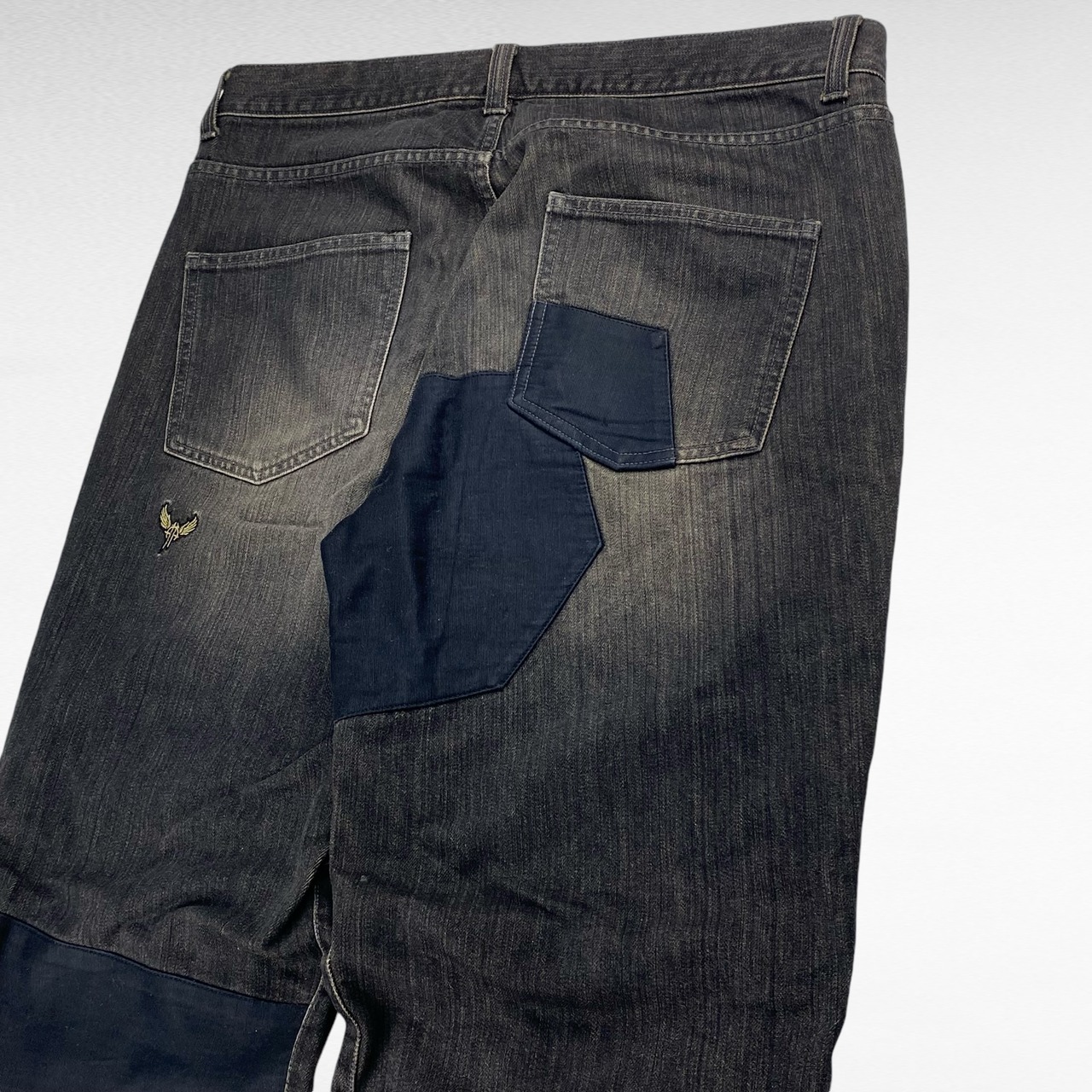 人気のブラックデニムで、このやり過ぎない程よいパッチワークデザインが非常に魅力的な1本となっております。