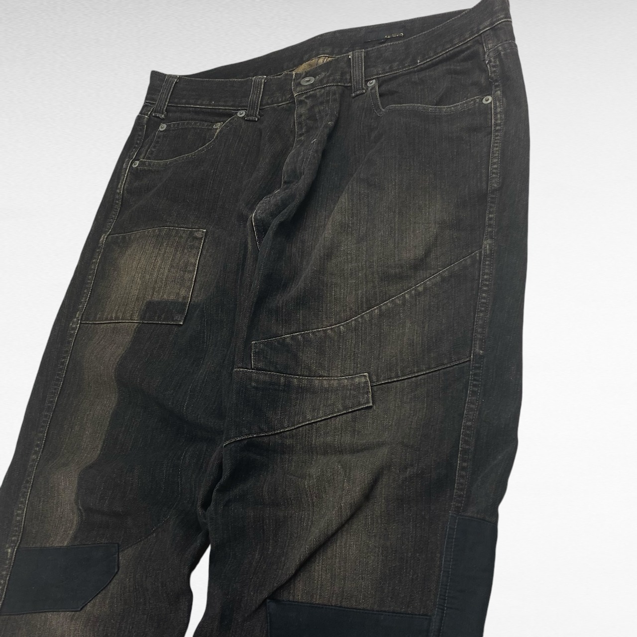 USED オールアラウンド W33相当 パッチワークデニムパンツ ブラックデニム