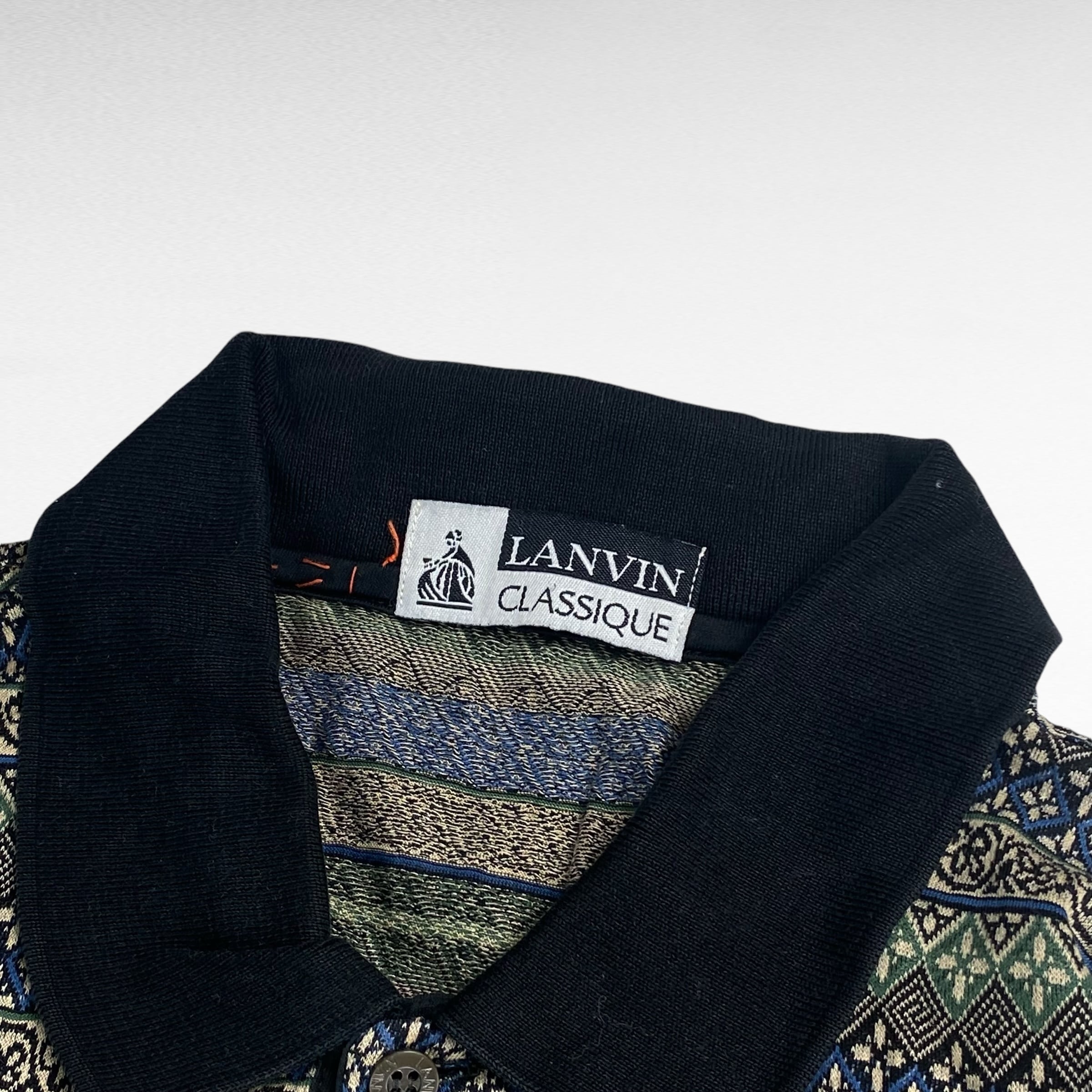 【90's】 ランバン M相当 長袖ポロシャツ 総柄 イタリア製