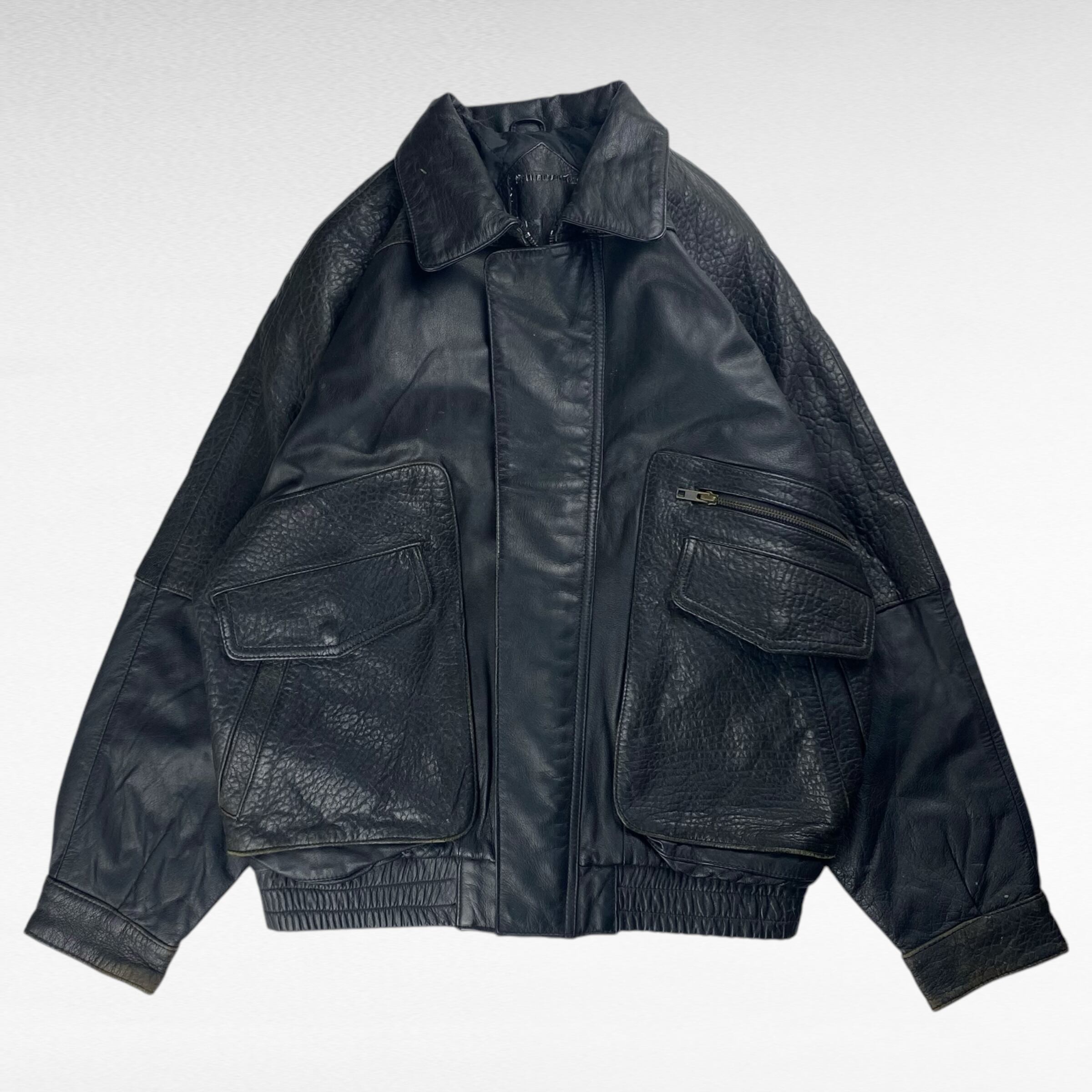USED レザージャケット ブルゾン L相当 切り替えデザイン カウレザー ラムレザー
