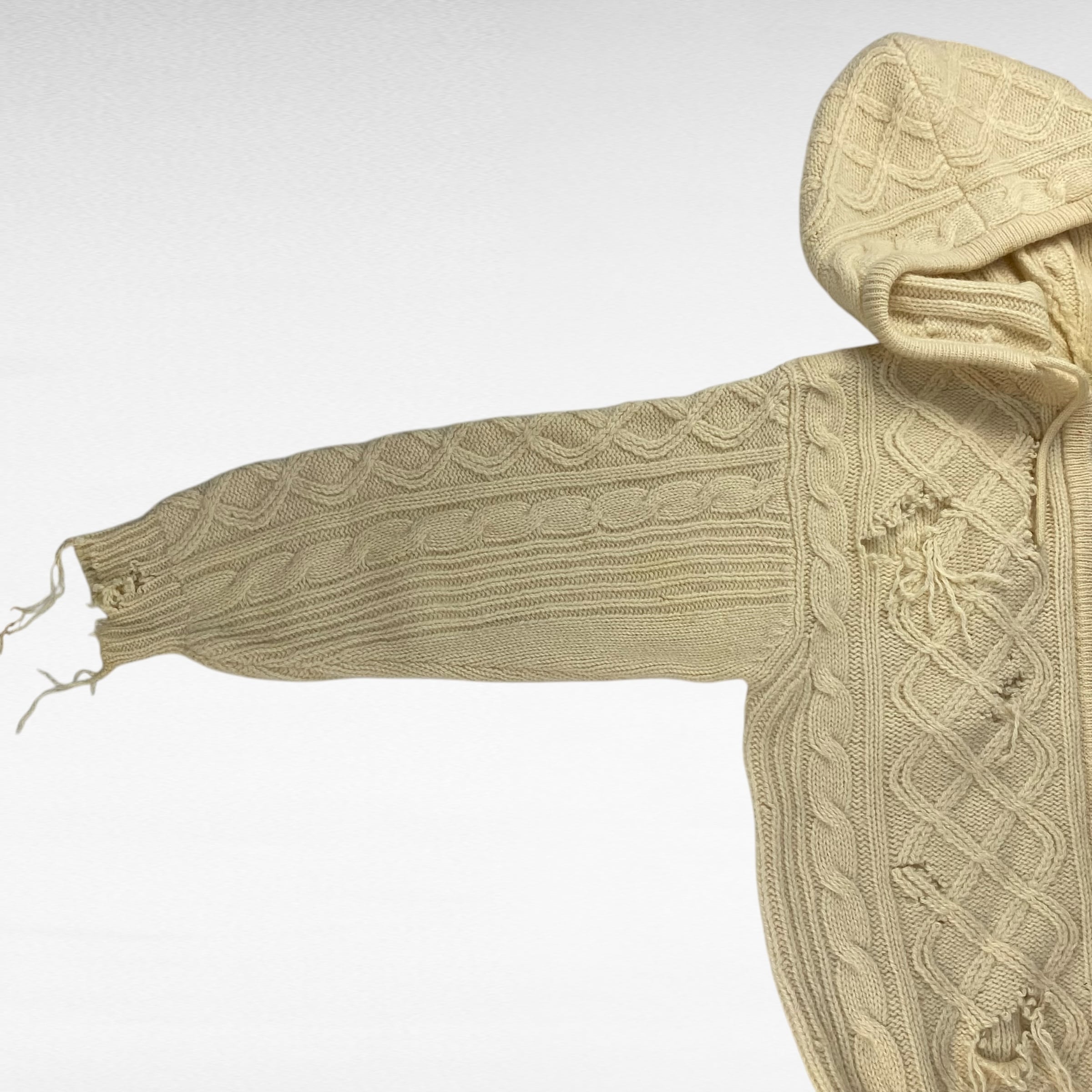 ケーブル編みで、何よりジップパーカーのニットというのは中々ありそうで無かったアイテム。出会うことも少ないかと思います。
